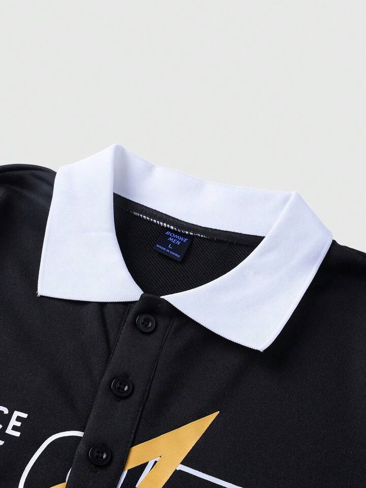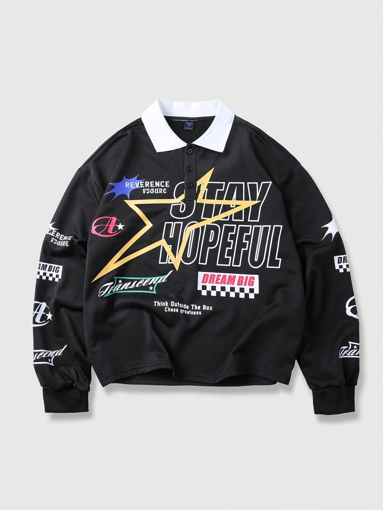 Prep Camicia polo a maniche lunghe con stampa minimalista da uomo