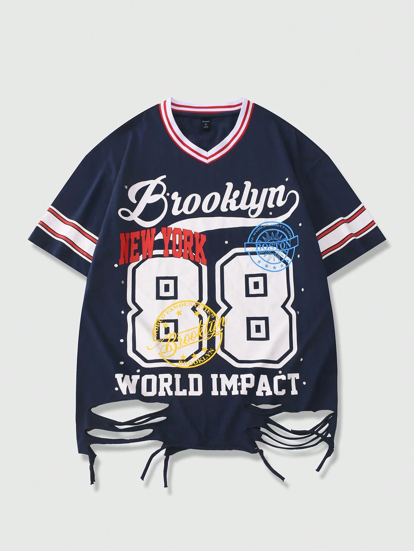 Prep Maglietta casual in cotone da uomo con stampa a diamanti consumata e casuale