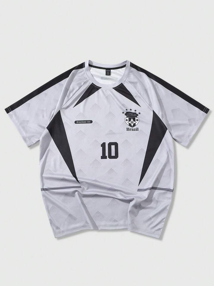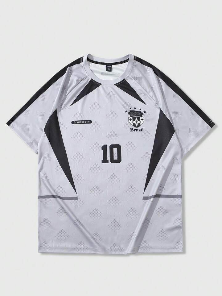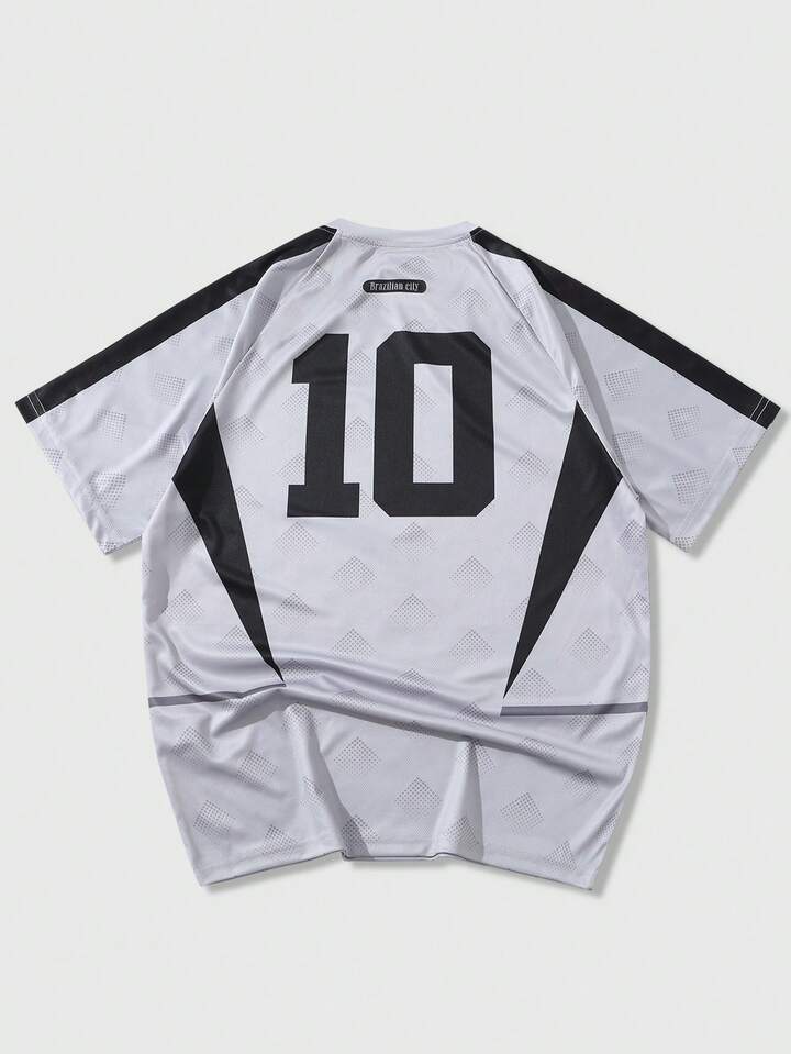 Prep T-shirt casual da uomo a maniche corte con stampa numerica e collo rotondo