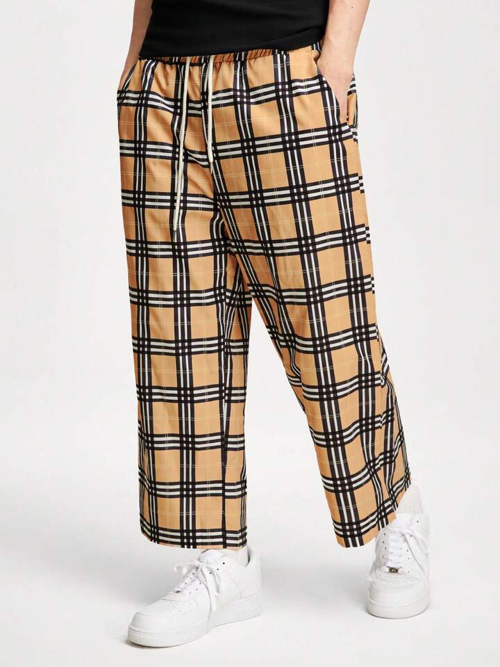 Prep Pantaloni casual larghi uomo con vita con laccetto a quadri