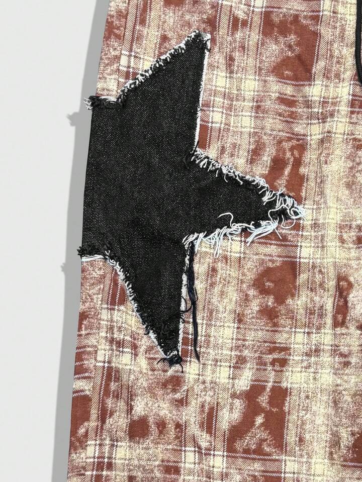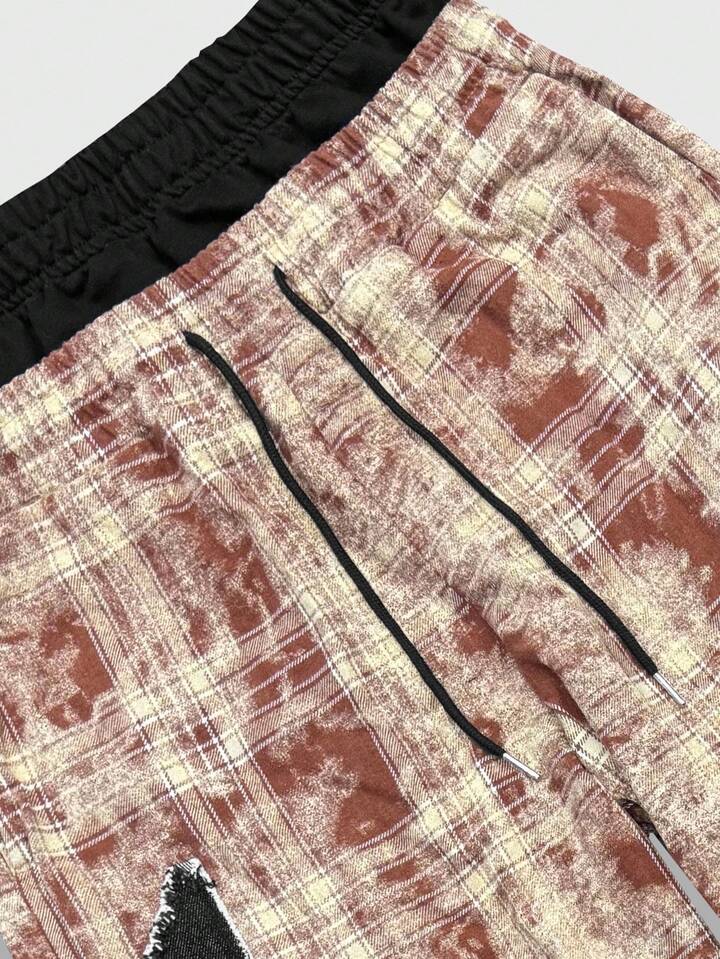 Prep Pantaloni dritti con coulisse e toppe a stella a cinque punte a quadri, autunnali, da uomo