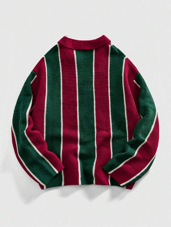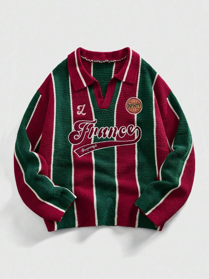 Prep Maglione a collo retrò ispirato al calcio, stile streetwear da uomo