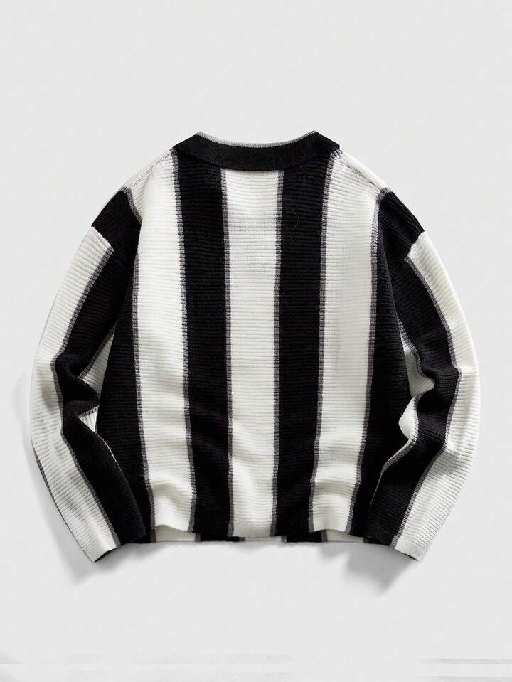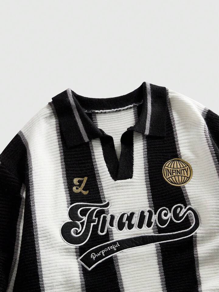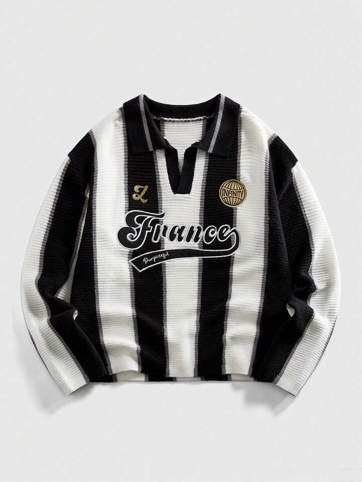 Prep Maglione a collo retrò ispirato al calcio, stile streetwear da uomo