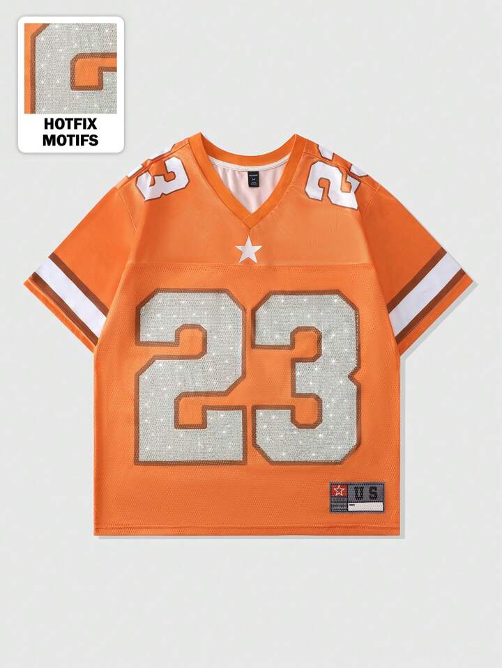 Prep Maglietta da uomo a maniche corte in tessuto di rete, con stampa di palle con strass, con pezze in tessuto