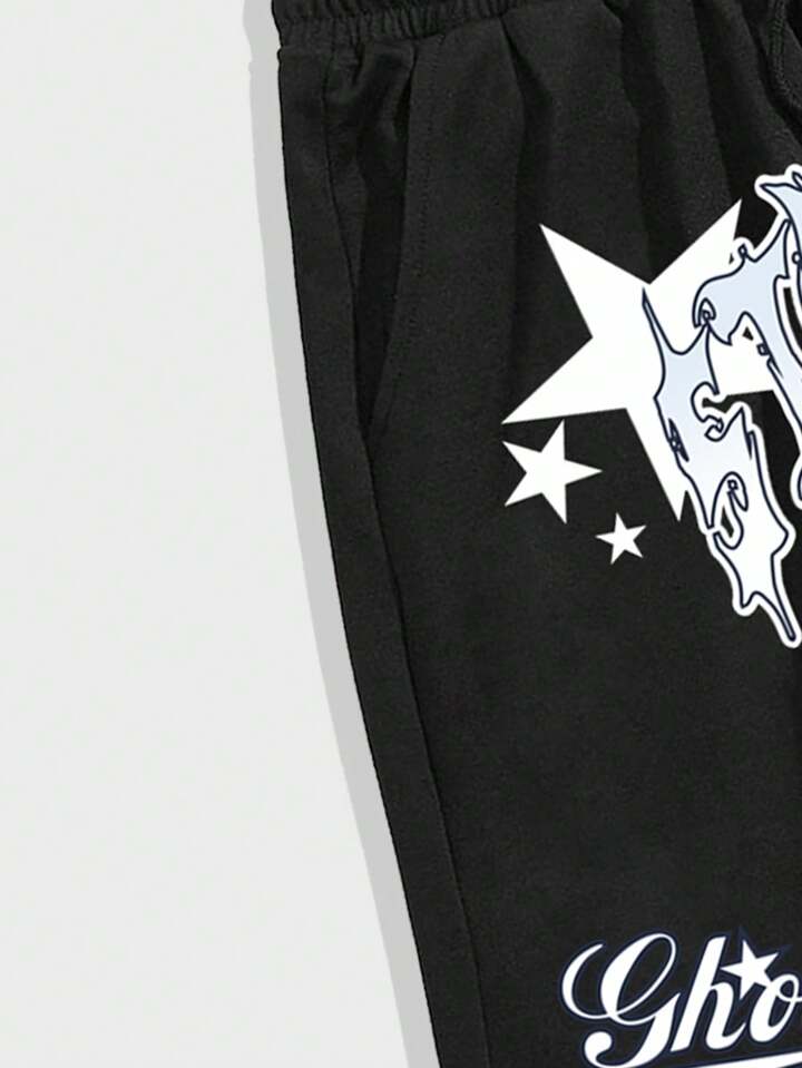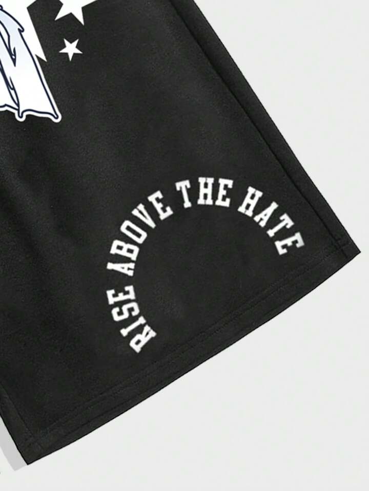 Prep Pantaloncini casual con coulisse in vita e grafica a lettere semplice, adatti per la scuola