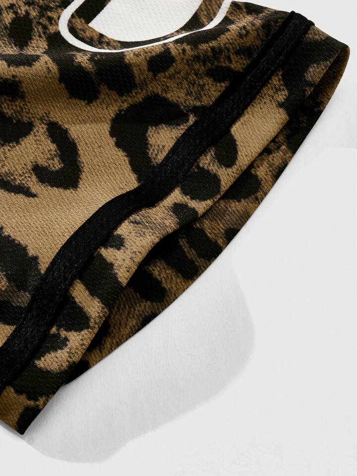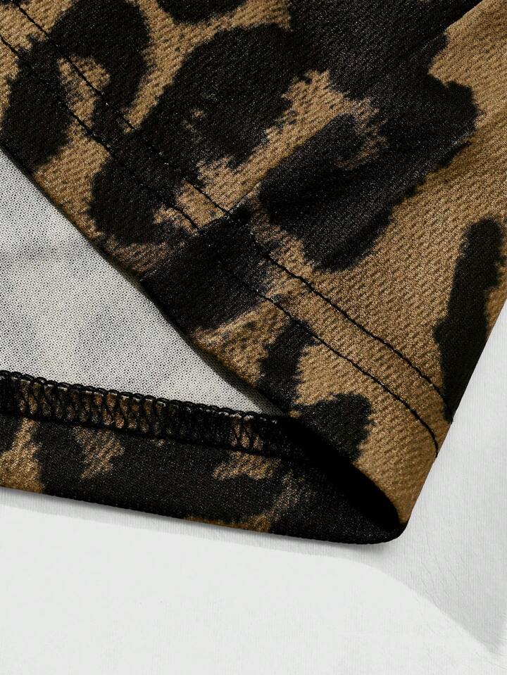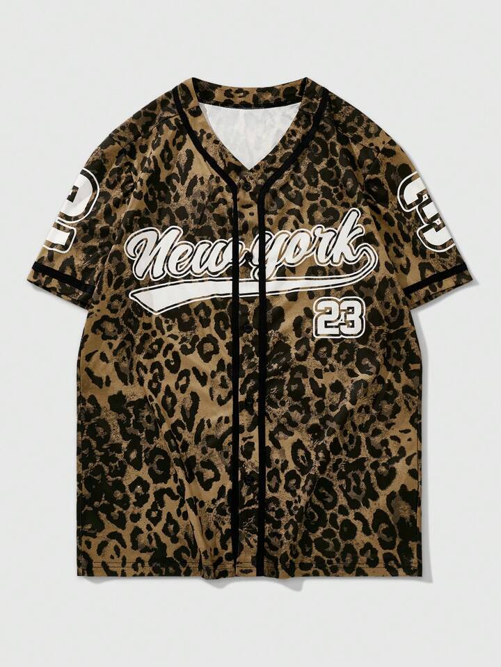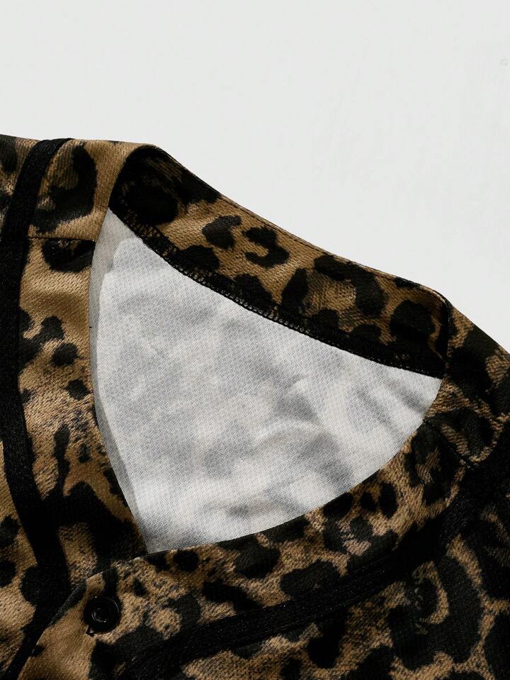 Prep Camicia casual estiva da uomo con stampa del logo e motivo leopardato a maniche corte