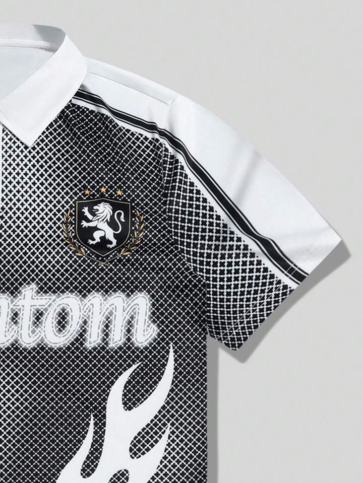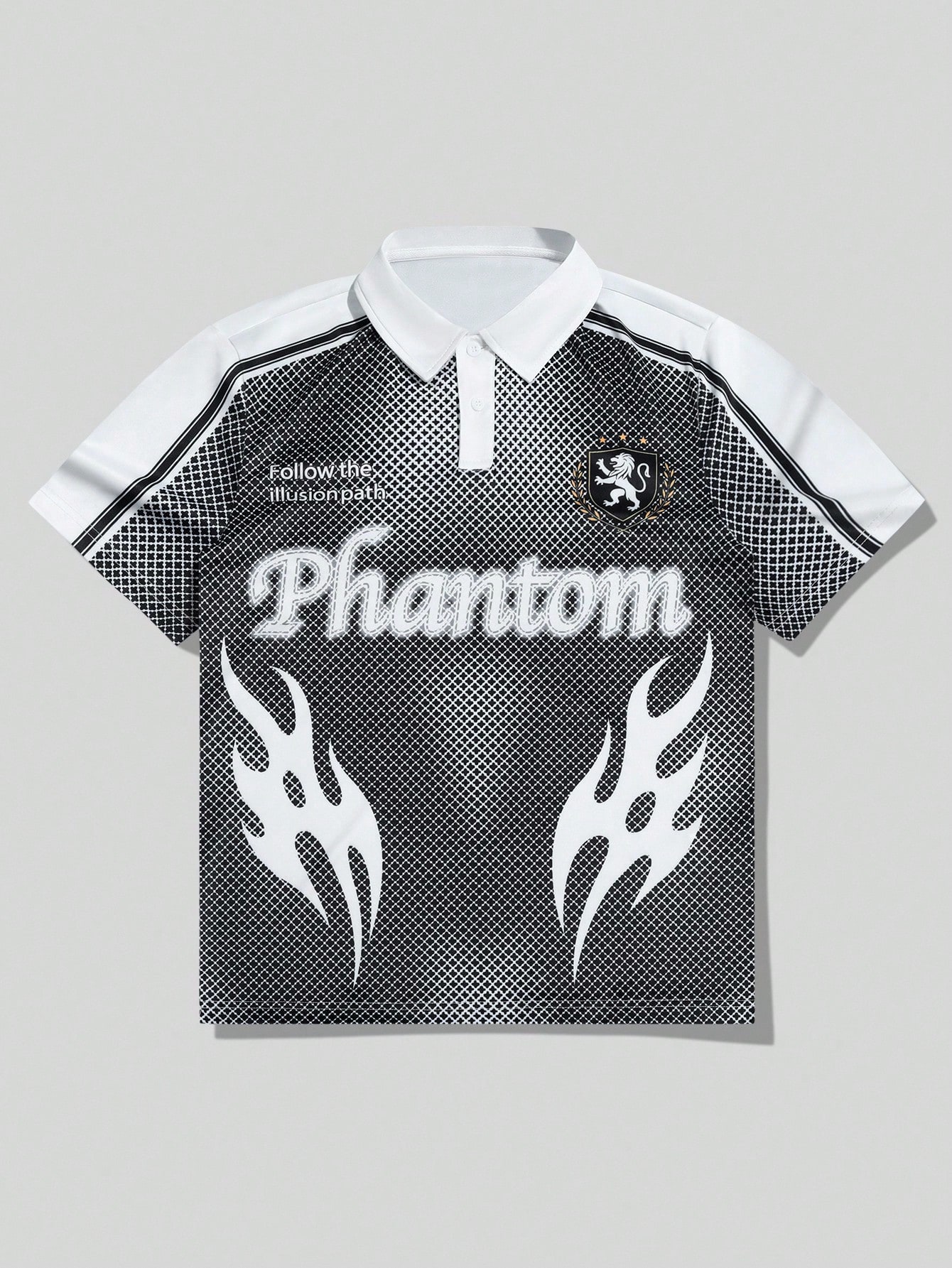 Prep Maglietta polo casual da uomo con stampa a lettere e fiamme per l'estate