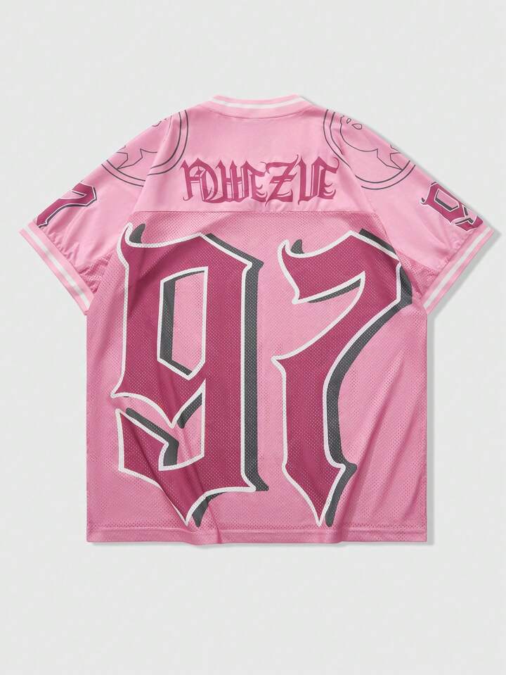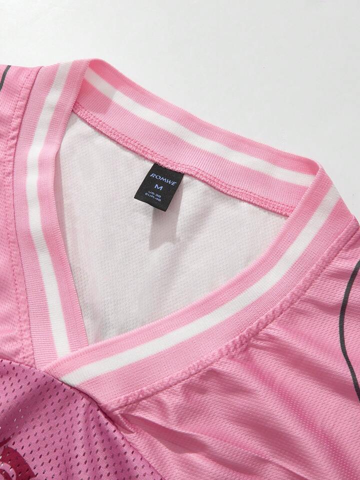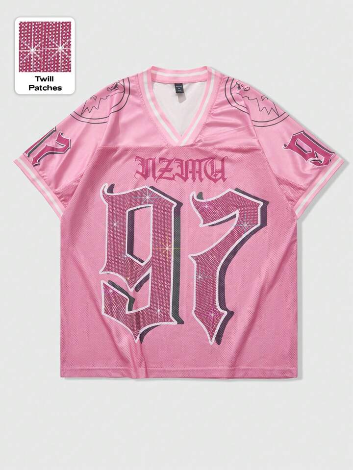 Prep Maglia sportiva in maglia rosa con scollo a V, con grafica personalizzata con lettera e strass "97"