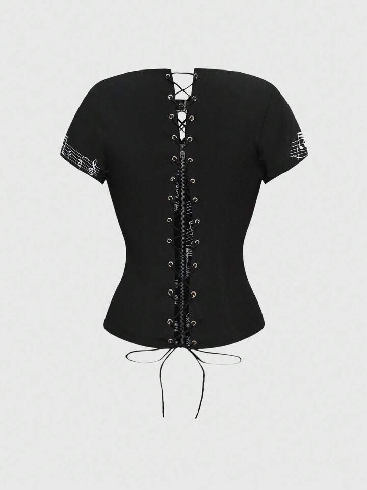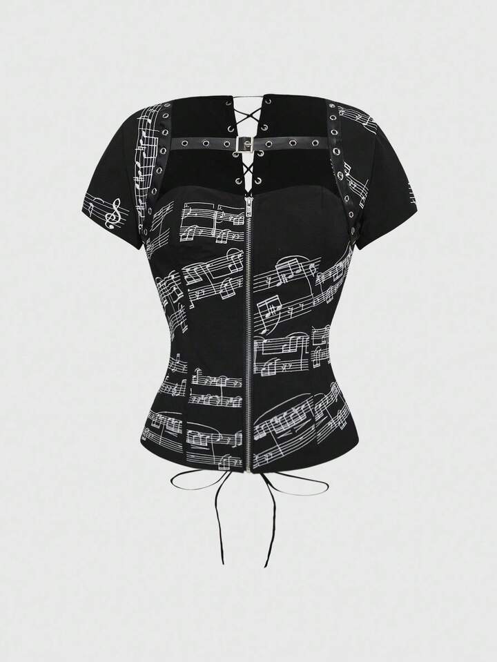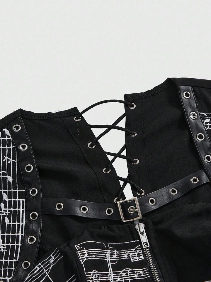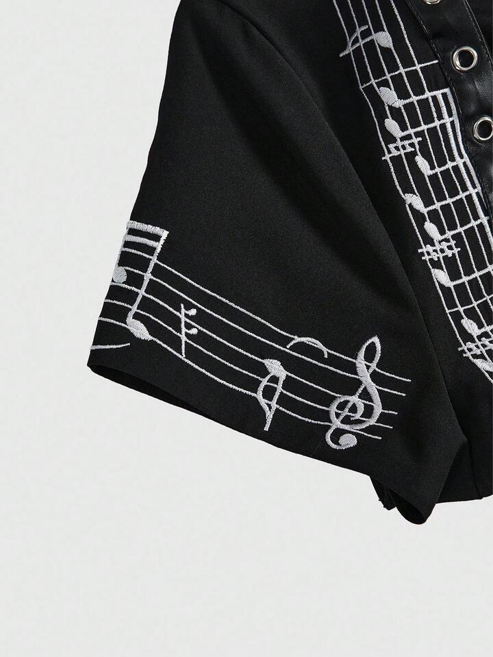 ROMWE Avant 2 pezzi Top bralette con note musicali gotiche ricamate per donne, Ognissanti