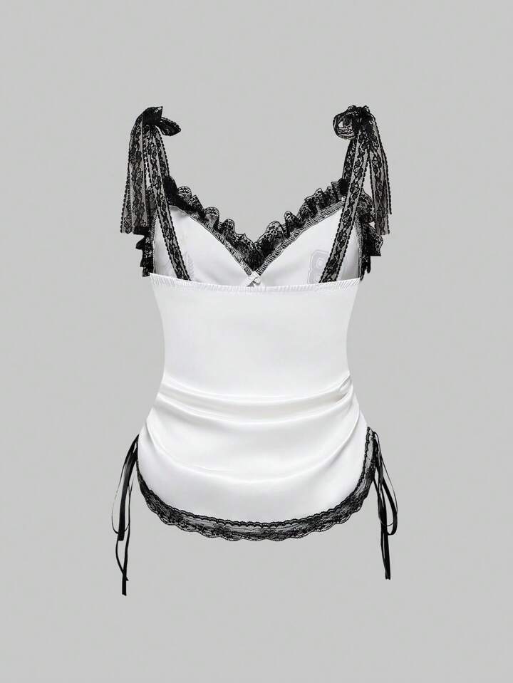 ROMWE Avant Canotta da donna con arricciature, orlo in pizzo a contrasto e laccetti, in stile Y2K