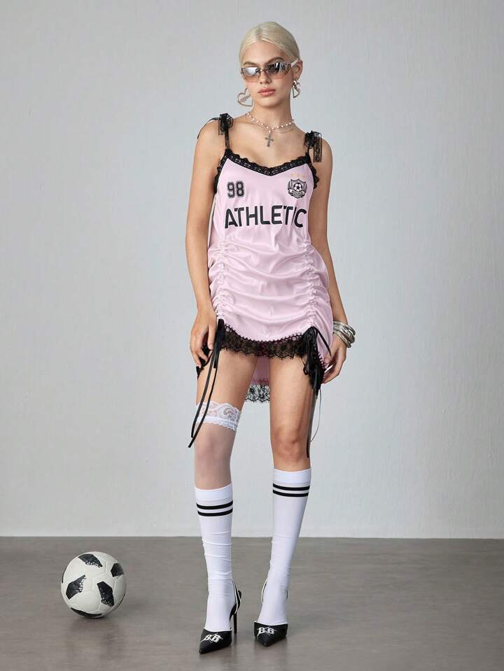 ROMWE Avant Abito da donna con maniche a lanterna, bordi in pizzo e laccetti, di stile sportivo e sexy, di come lo stile Y2K