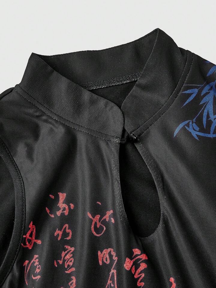 ROMWE Avant Canotta da donna con stampa di stile cinese raffigurante tigre e foglie di bambù