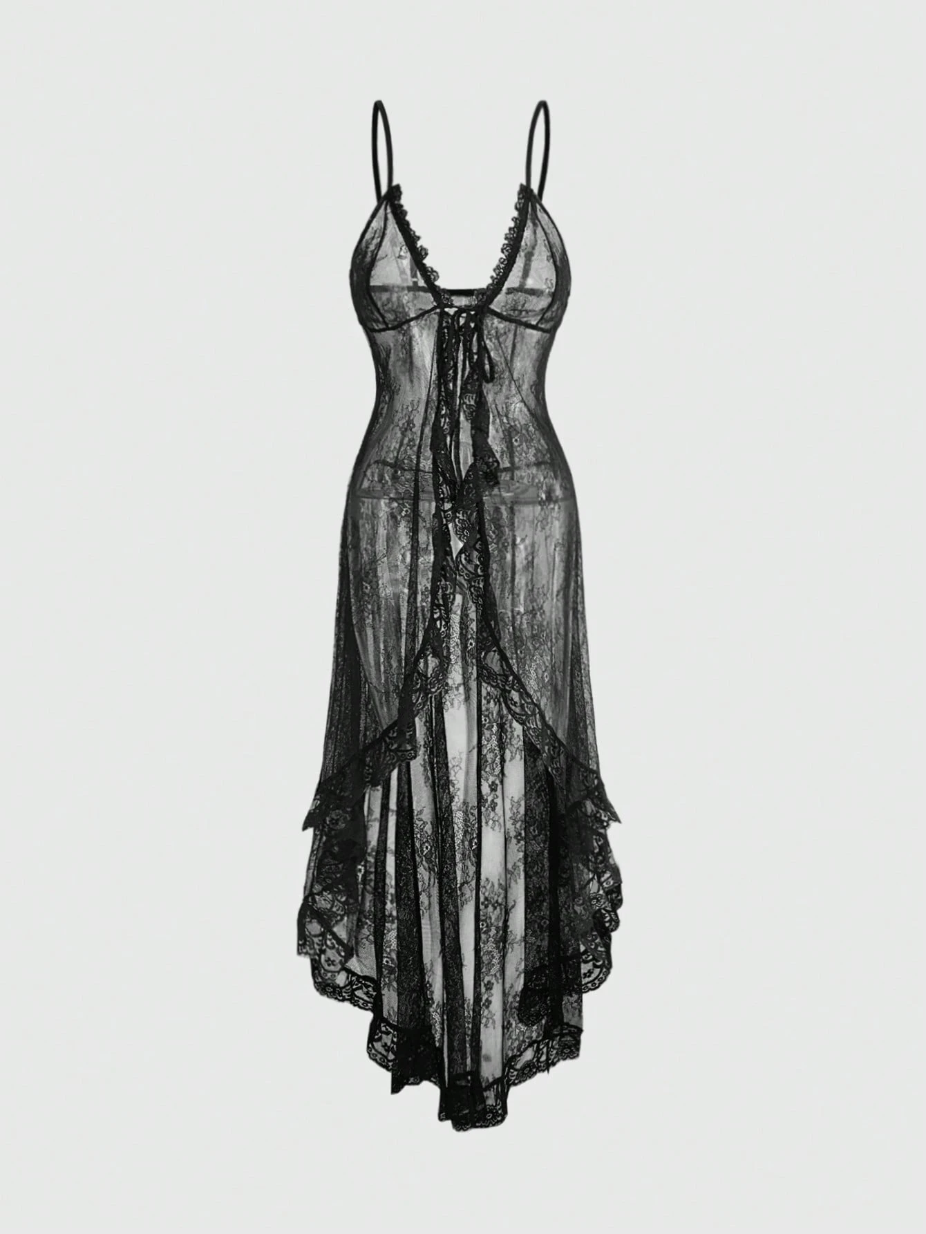 ROMWE Avant Abito elegante e alla moda per vacanze e feste, con orlo in pizzo asimmetrico e trasparente, sexy per le donne