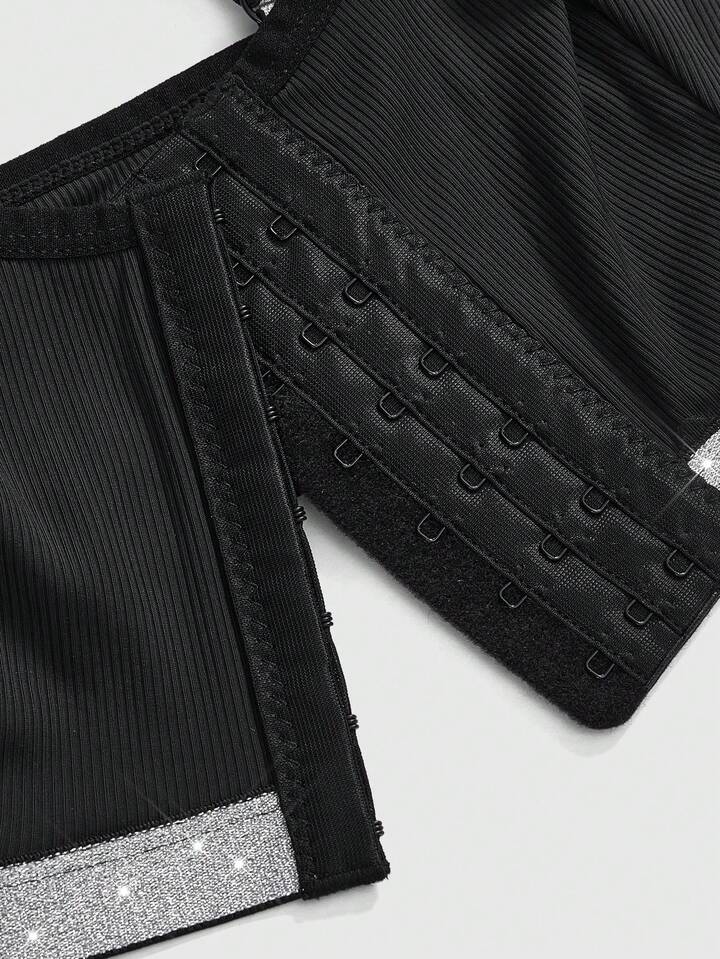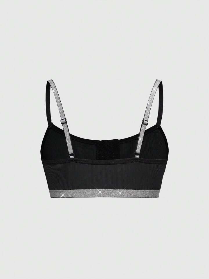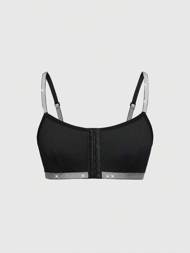 ROMWE Avant Reggiseno senza ferretto alla moda con chiusura anteriore in filo d'argento, colore nero
