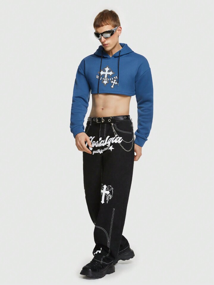 ROMWE Avant Ragazzi Felpa con cappuccio con grafica lettera spalle cadenti con coulisse