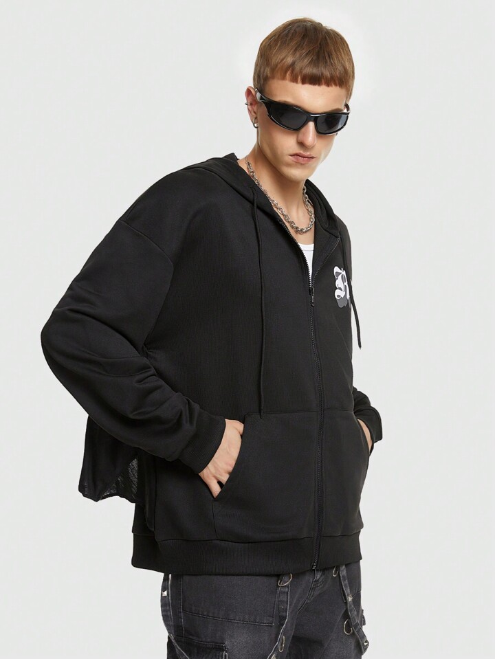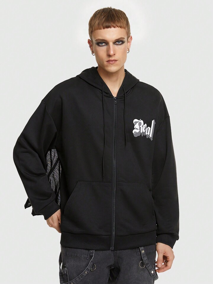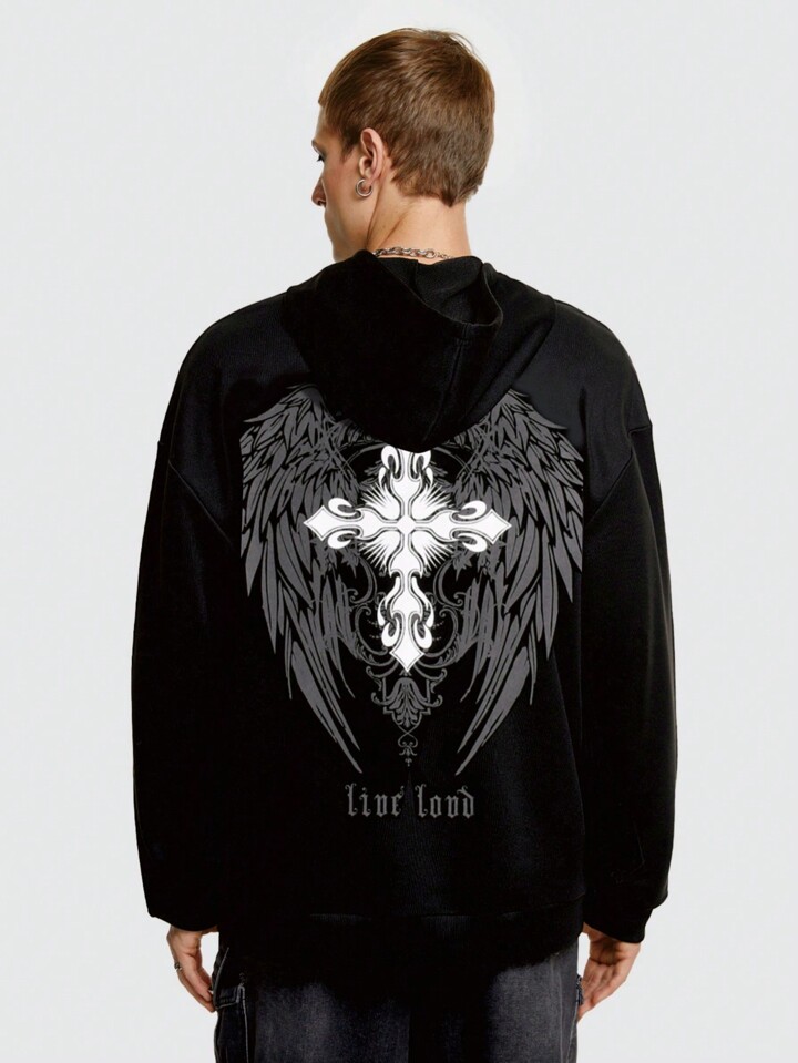 ROMWE Avant Uomo Felpa con cappuccio lettere & con stampa ali spalle cadenti con coulisse