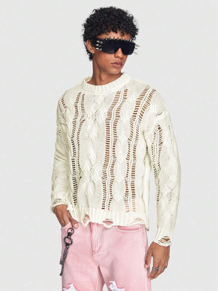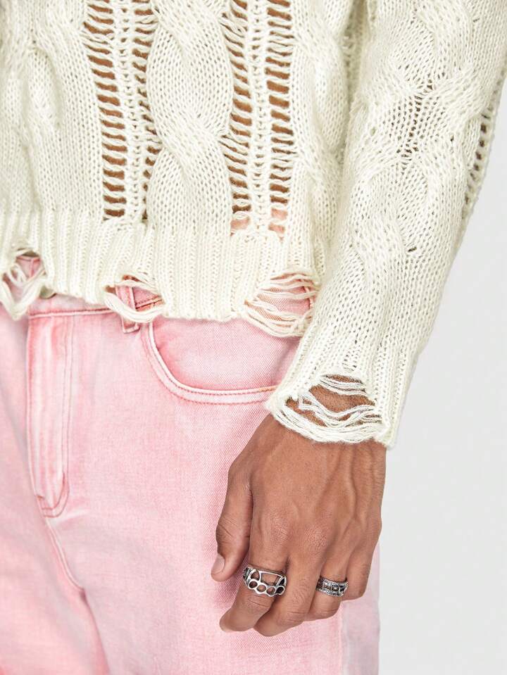 ROMWE Avant Ragazzi Maglione invecchiato monocolore scavato