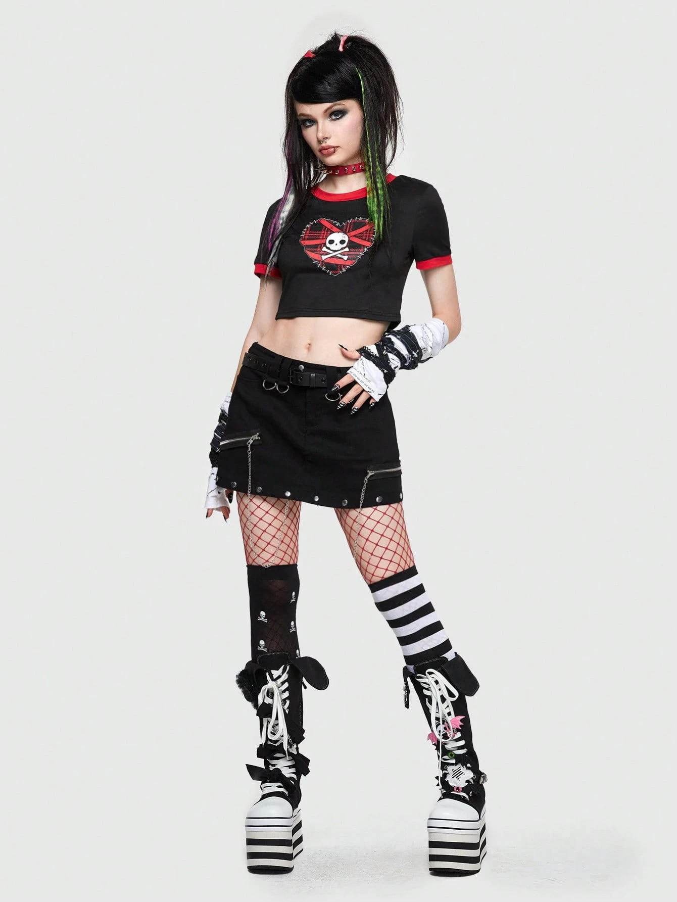 ROMWE Avant Maglietta corta con stampa cuore bordo a contrasto