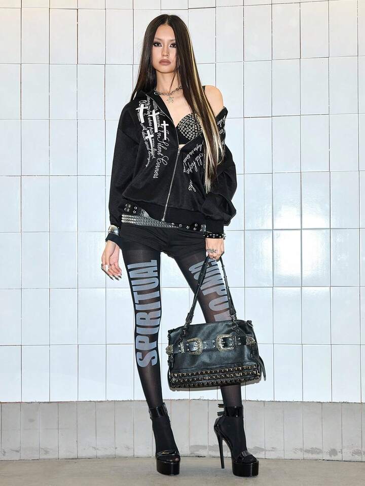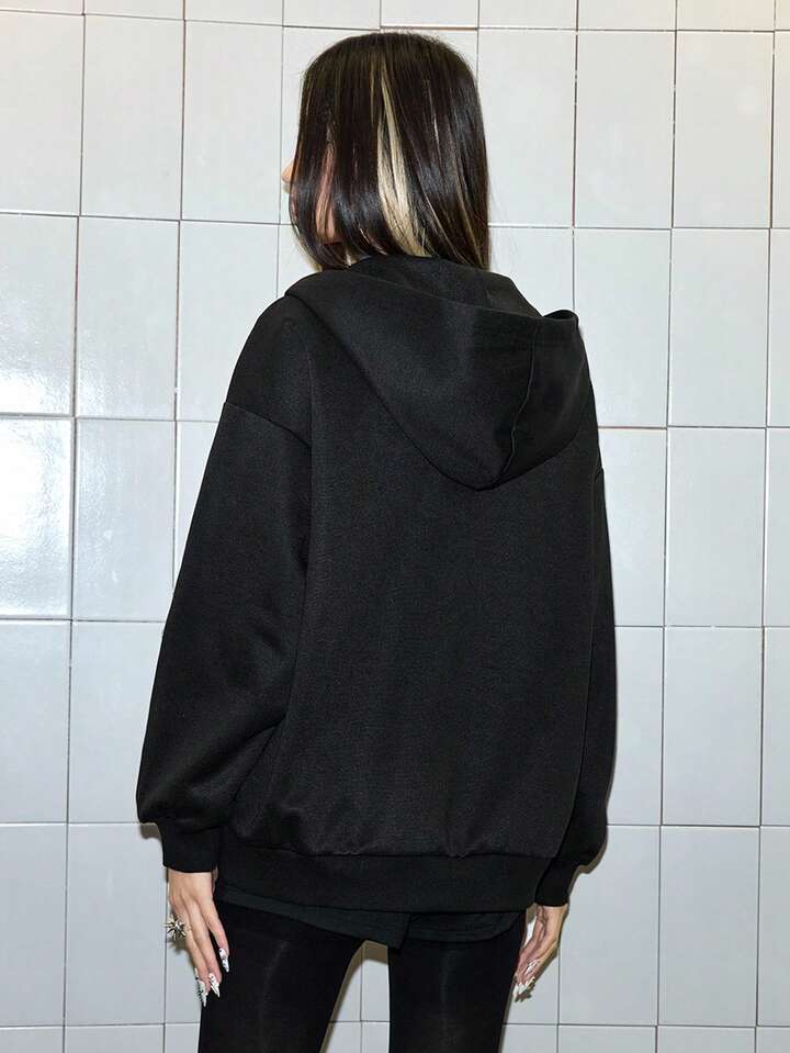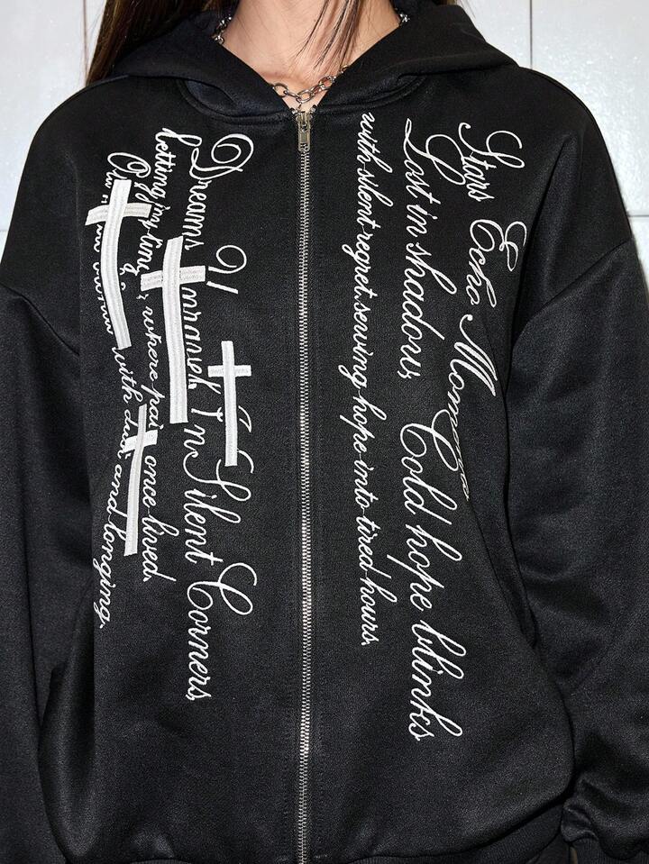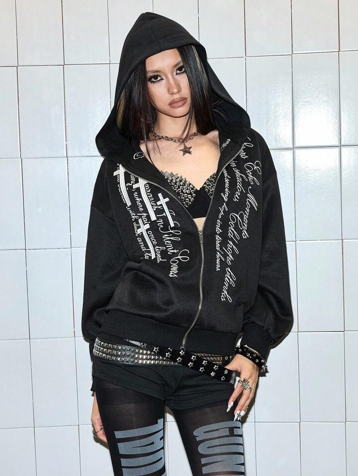 ROMWE Avant Felpa con cappuccio oversize con ricamo a croce con slogan, foderata termicamente