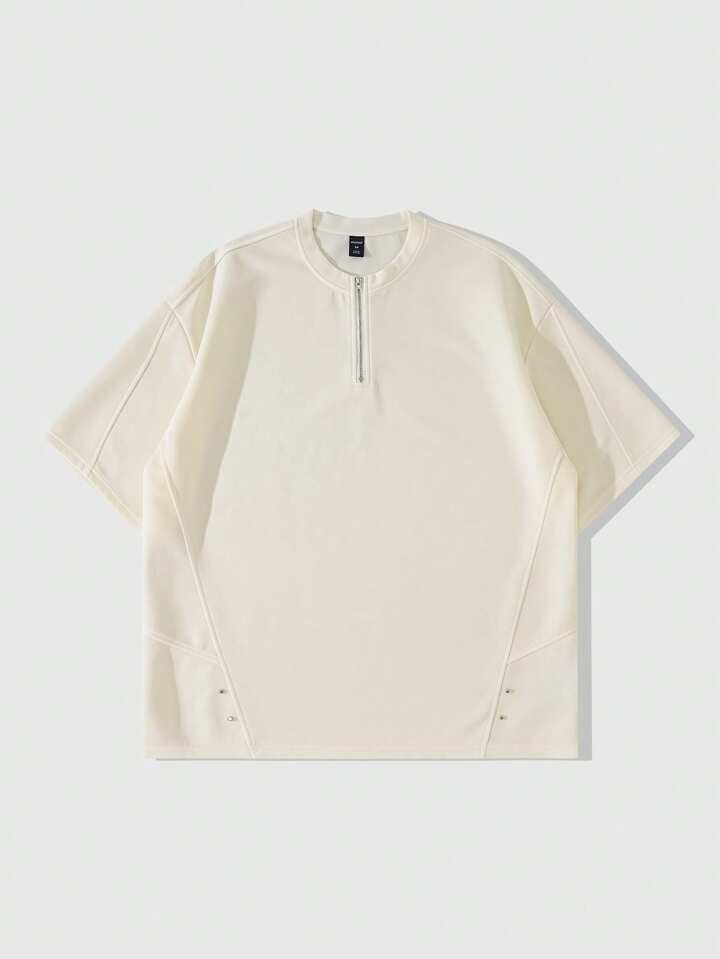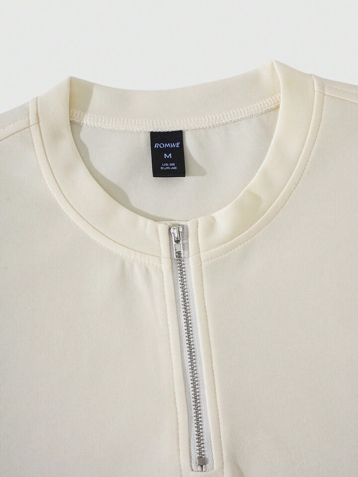 ROMWE Avant Maglietta estiva da uomo con collo tondo, chiusura a cerniera metallica, linea morbida e rilassata
