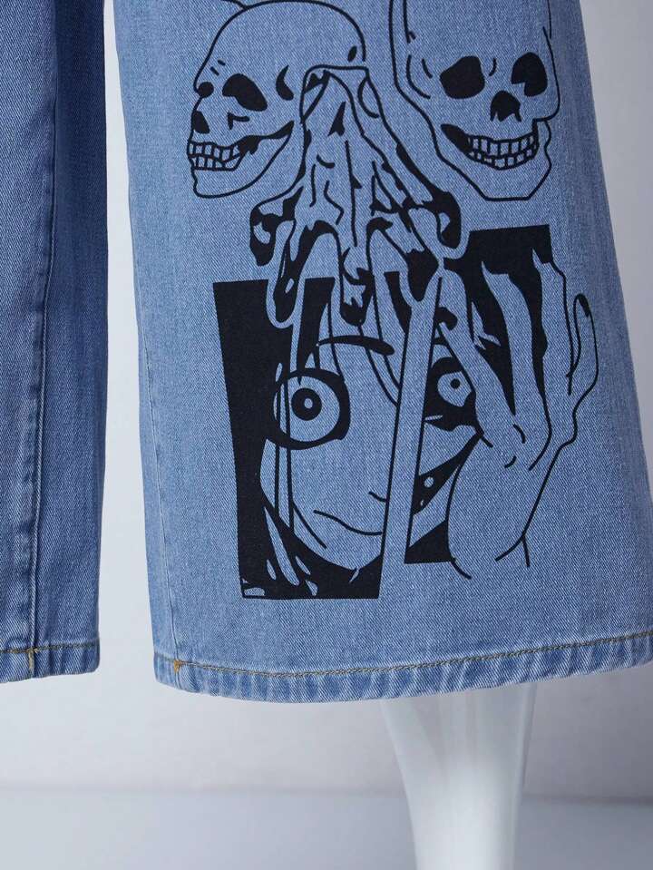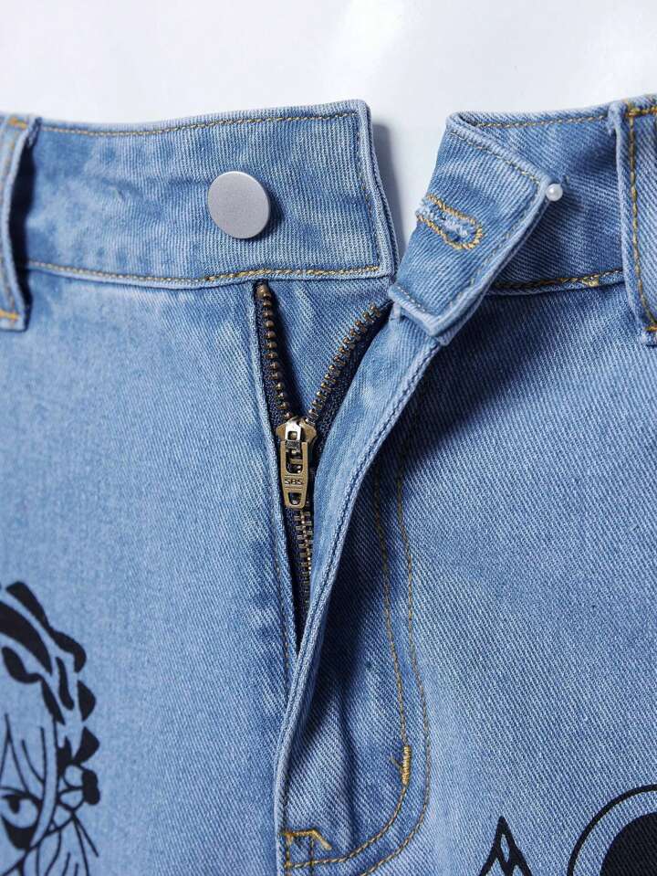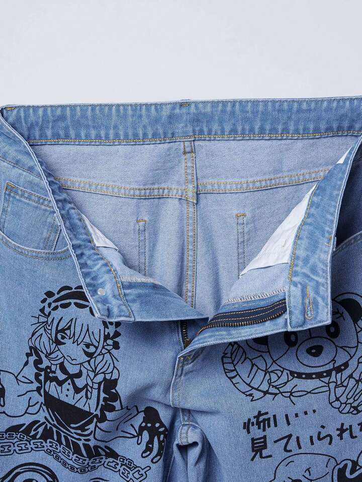 ROMWE Avant Jeans di denim casual da uomo con stampa cartoonistica 3/4 lunghezza