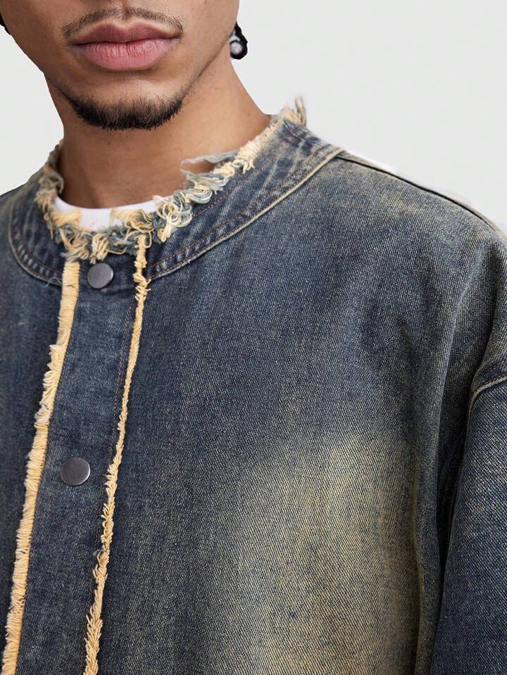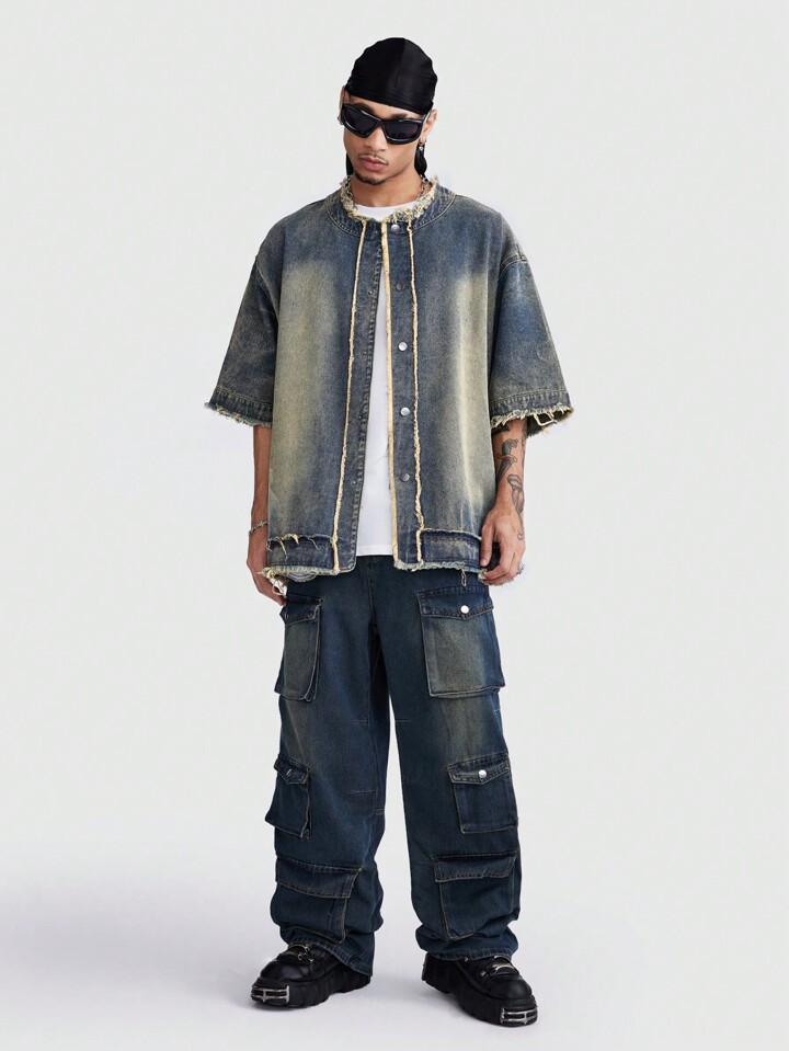 ROMWE Avant Camicia casual uomo a maniche corte in jeans stropicciato, primavera/estate