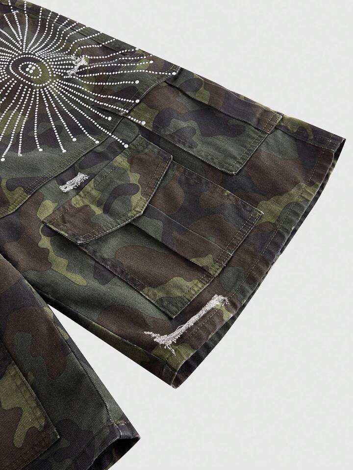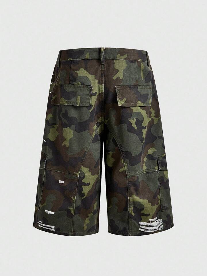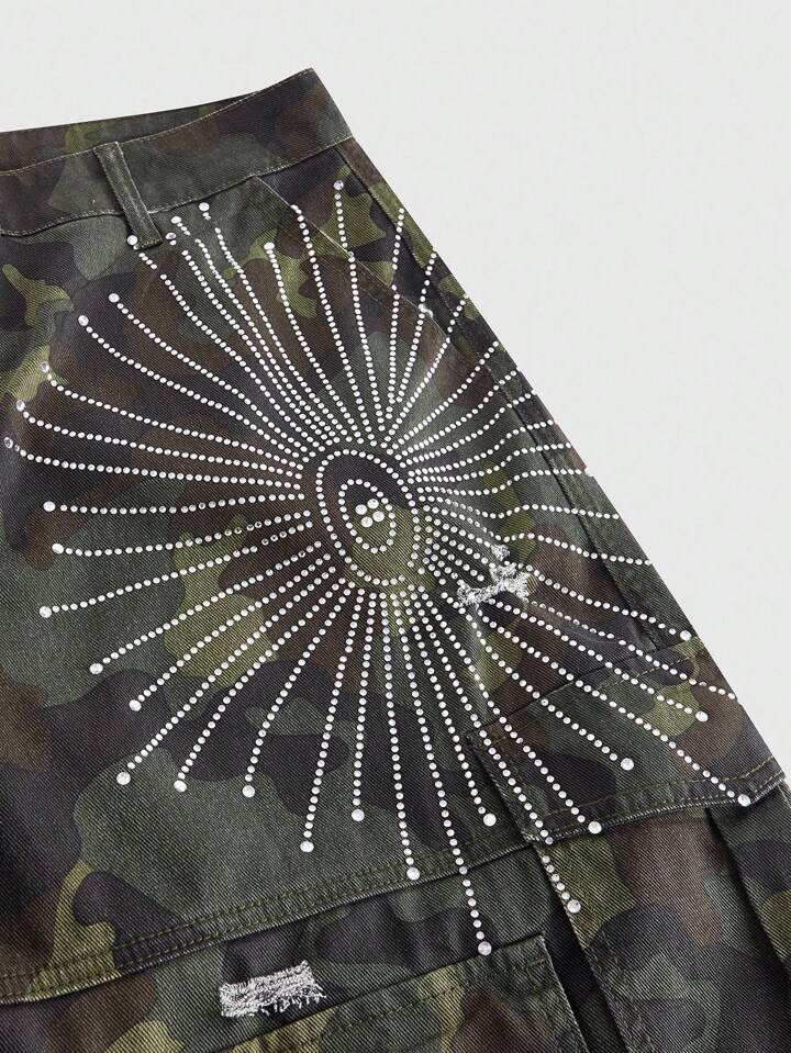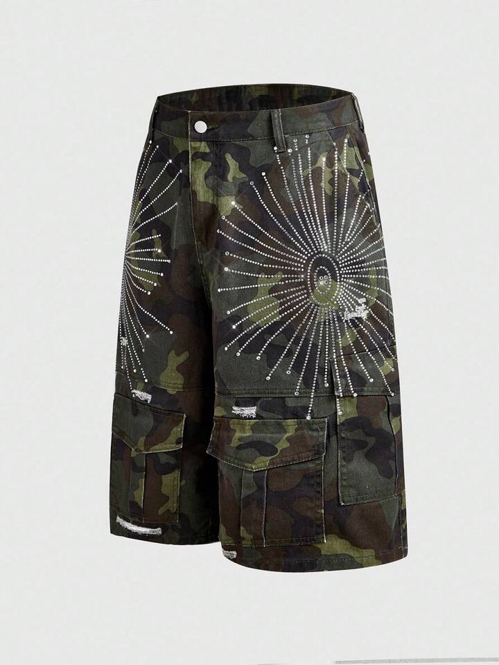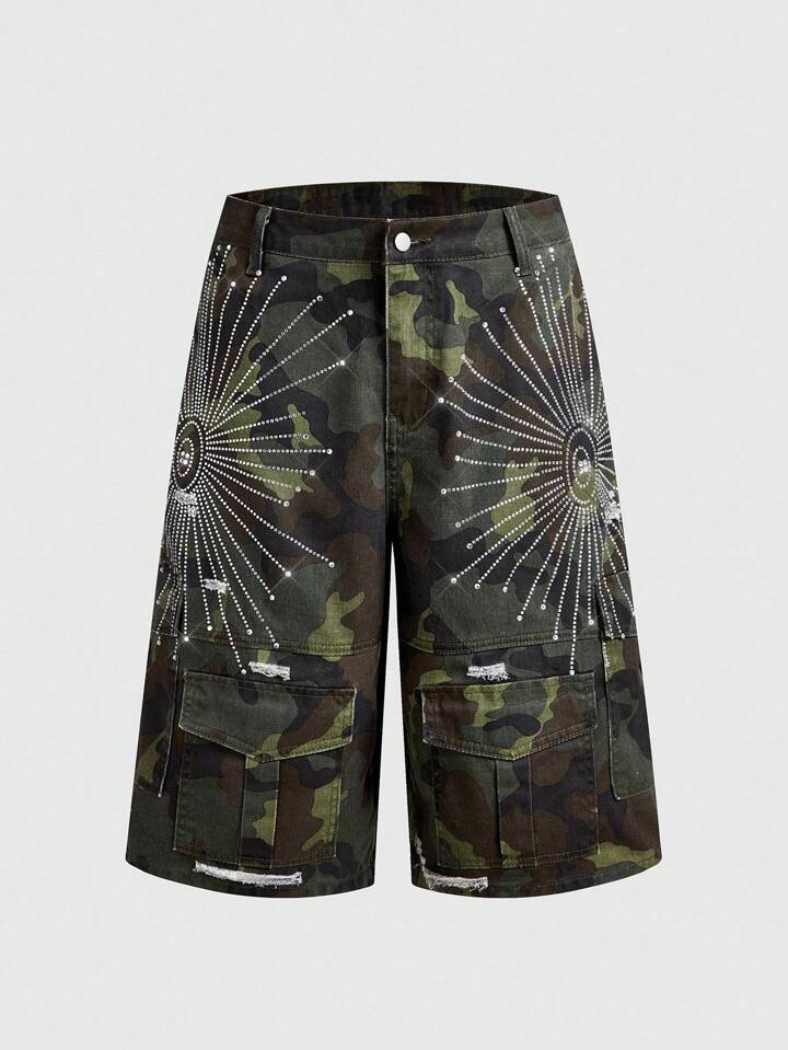 ROMWE Avant Pantaloncini in jeans 3/4 da uomo con tasche cargo, glitterati e mimetici