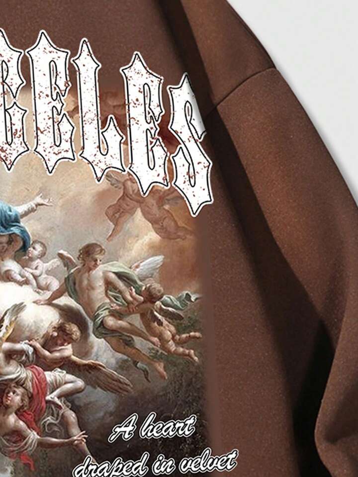 ROMWE Avant Felpa con cappuccio e cordino con stampa a lettera stile "Grandpacore" da uomo