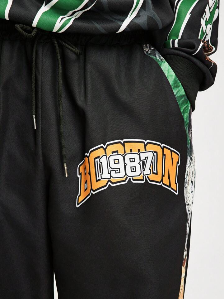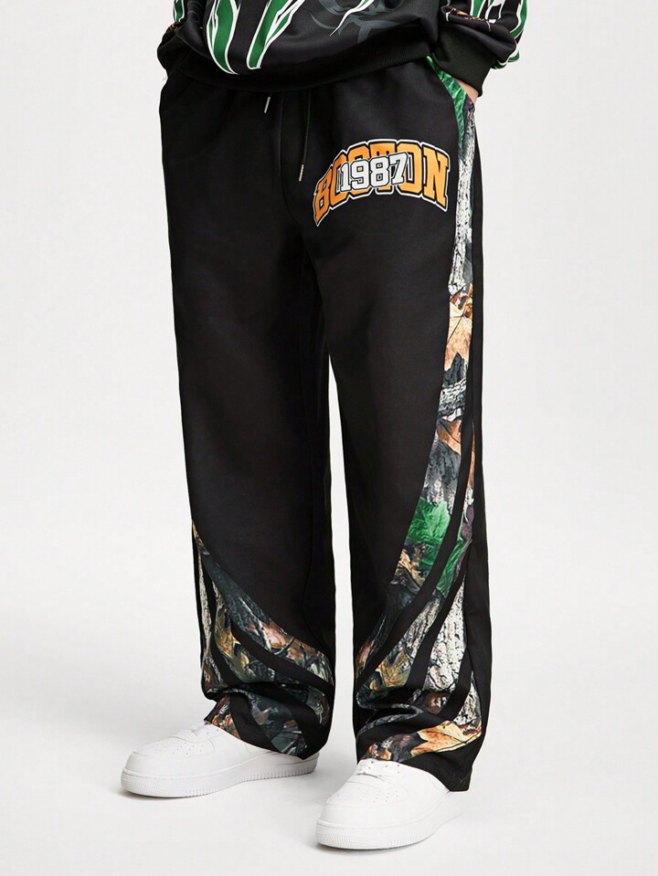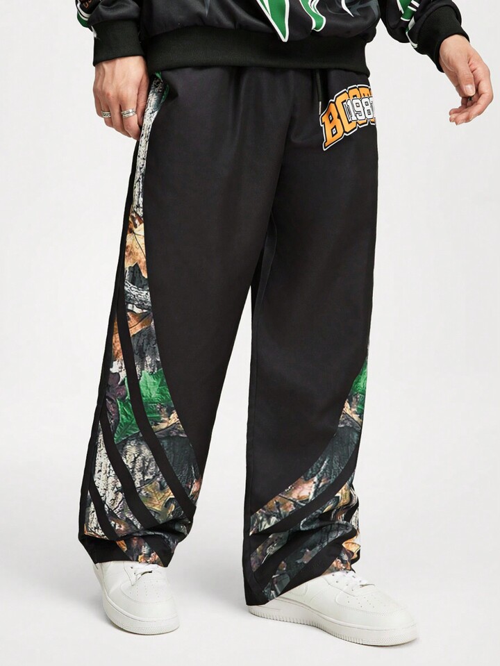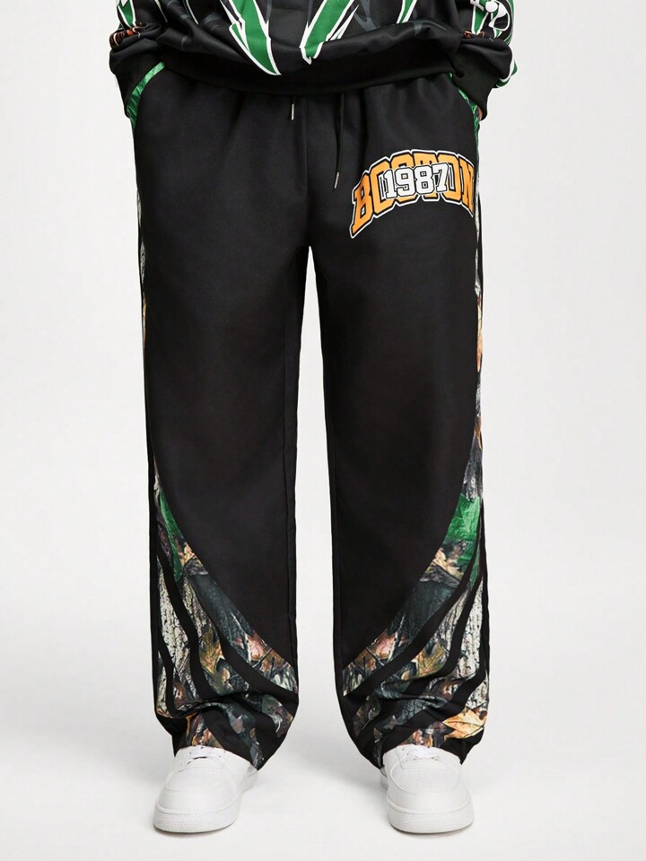ROMWE Avant Pantaloni casual da uomo con stampa mimetica a lettera e vita regolabile con cordoncino, adatti per primavera ed estate