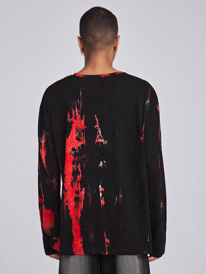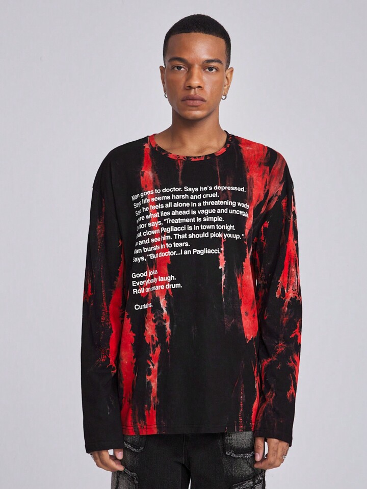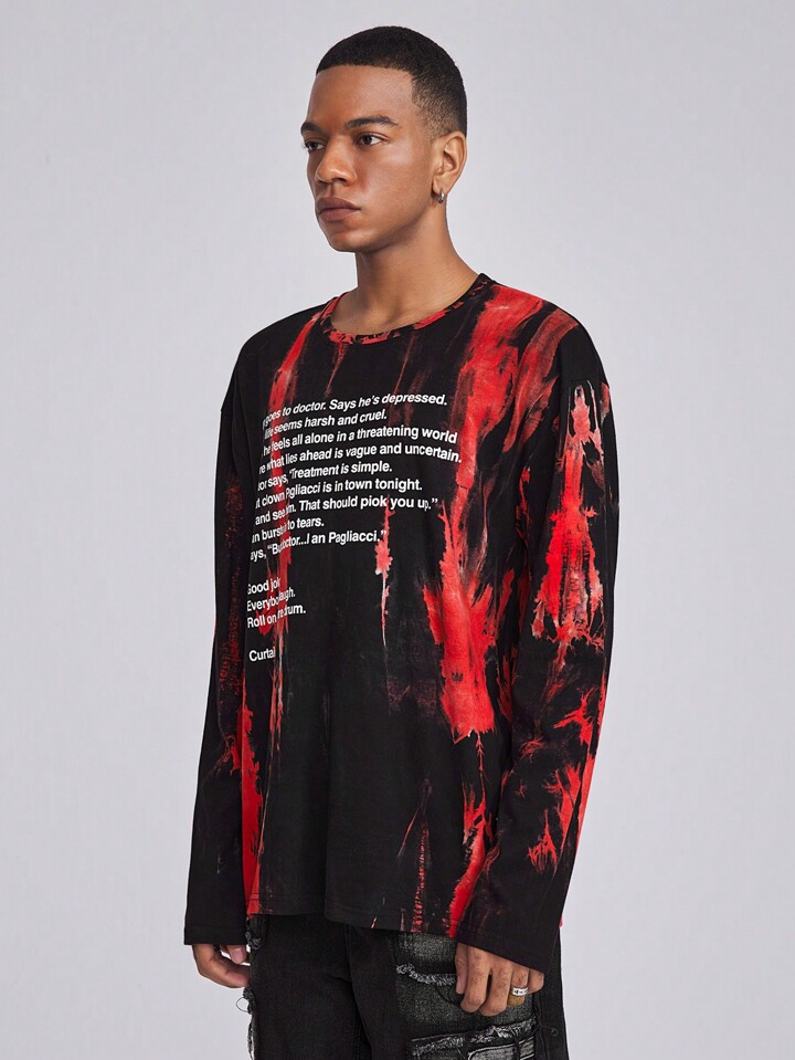ROMWE Avant Maglietta a manica lunga con scollo rotondo e stampa semplice da uomo, adatta per l'uso quotidiano