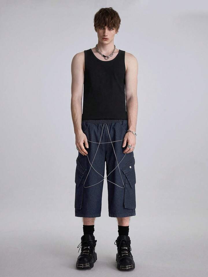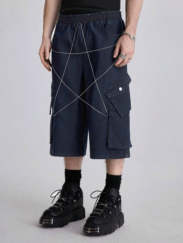 ROMWE Avant Pantaloncini cargo di jeans con stampa a stelle casual per uomo primavera ed estate