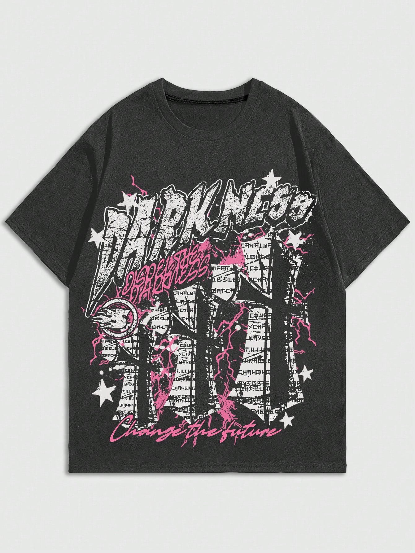 ROMWE Avant Maglietta estiva casual da uomo a maniche corte e collo rotondo, con stampa di lettere, morbida e ampia