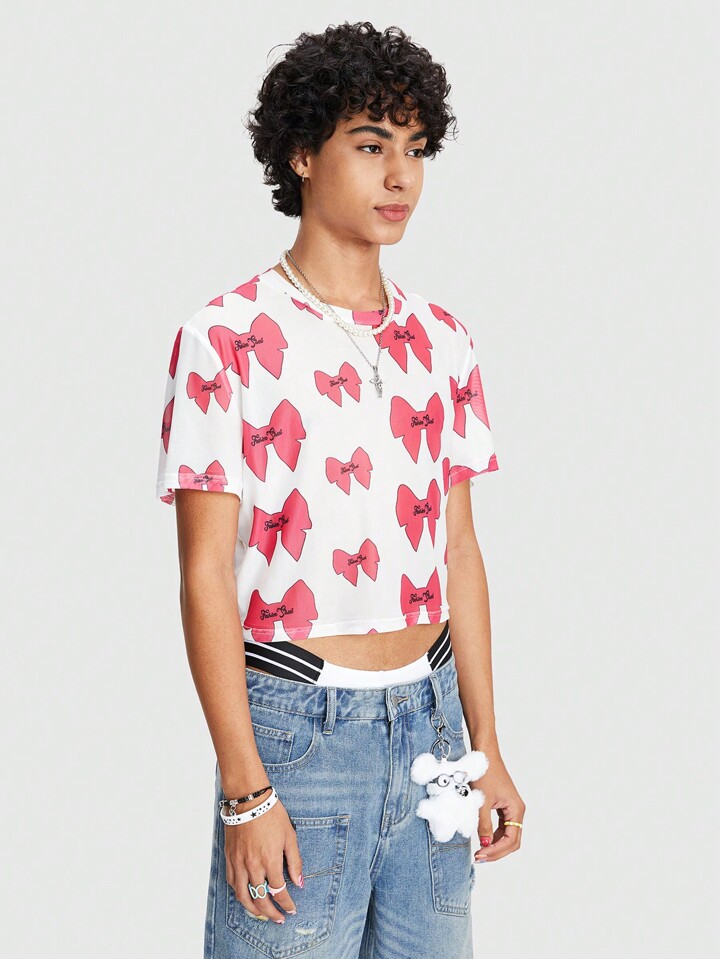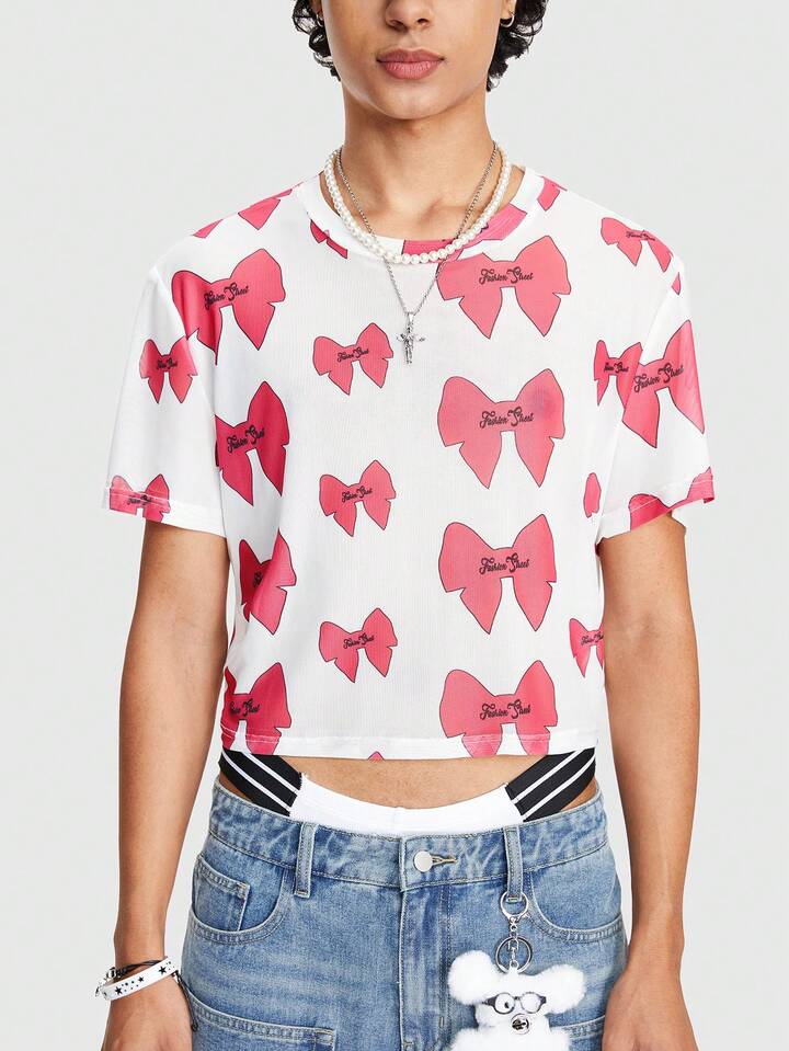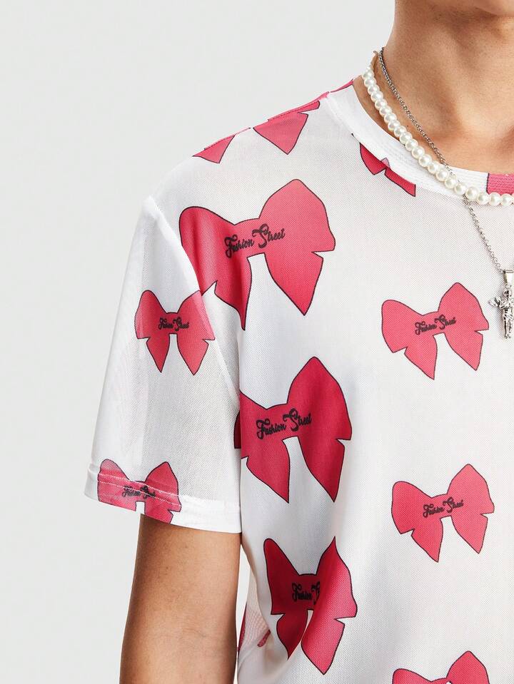 ROMWE Avant Maglietta casual estiva a manica corta con stampa di papillon a collo rotondo per uomo