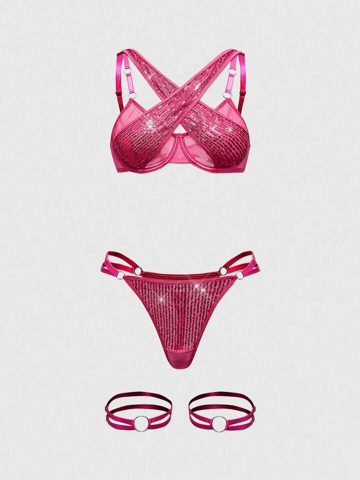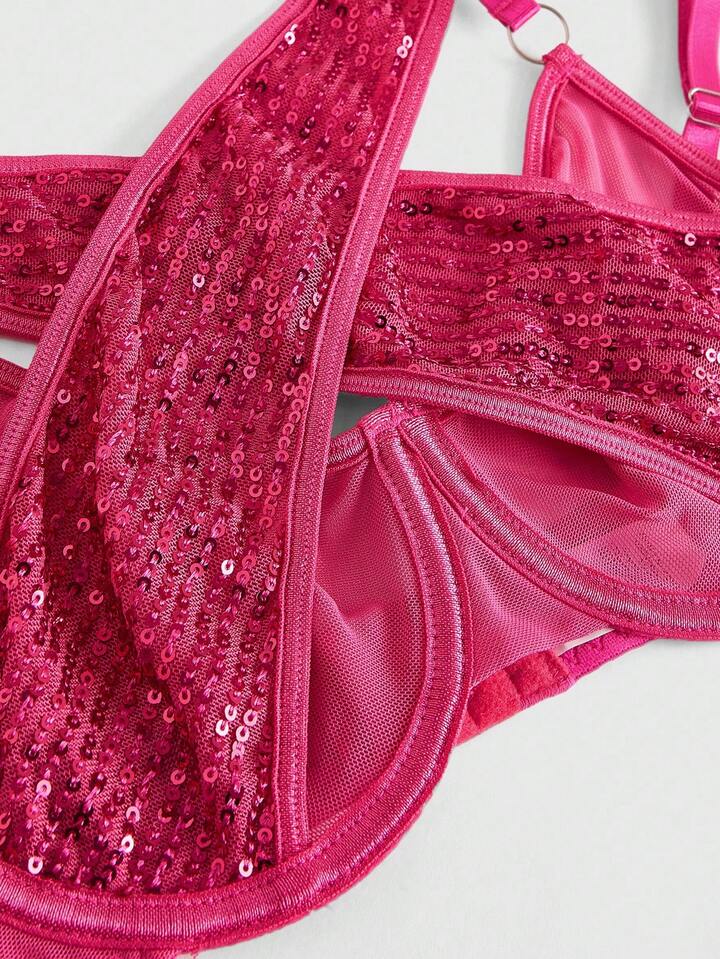 ROMWE Avant Completo reggiseno e slip con ferretto e paillettes per festival musicali, sexy per le donne