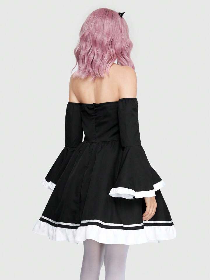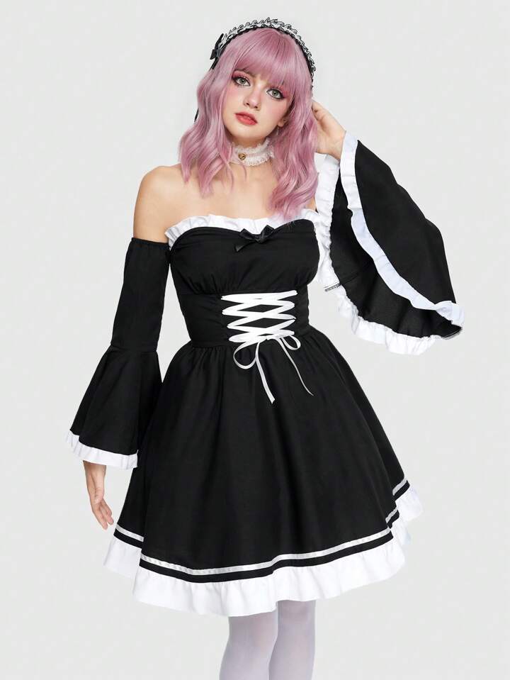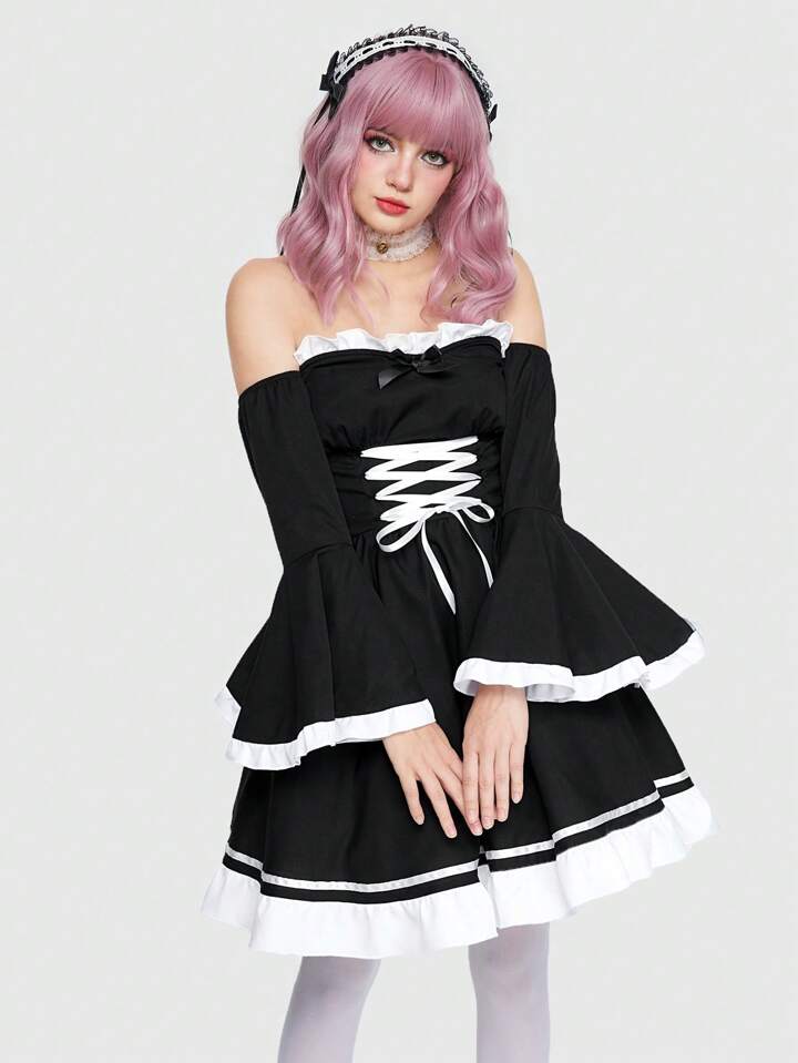ROMWE Avant Vestito costume con spalle scoperte con volant con lacci