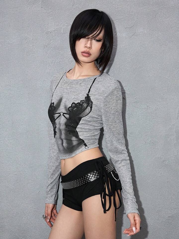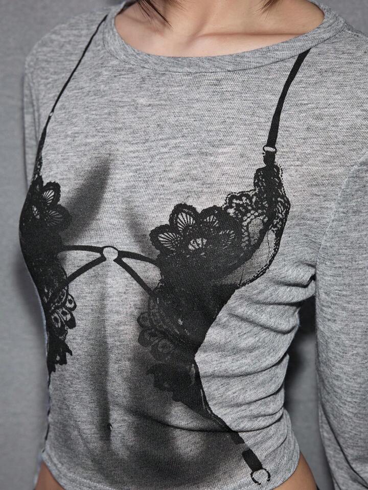 ROMWE Avant Maglietta a maniche lunghe aderente con stampa grafica sexy