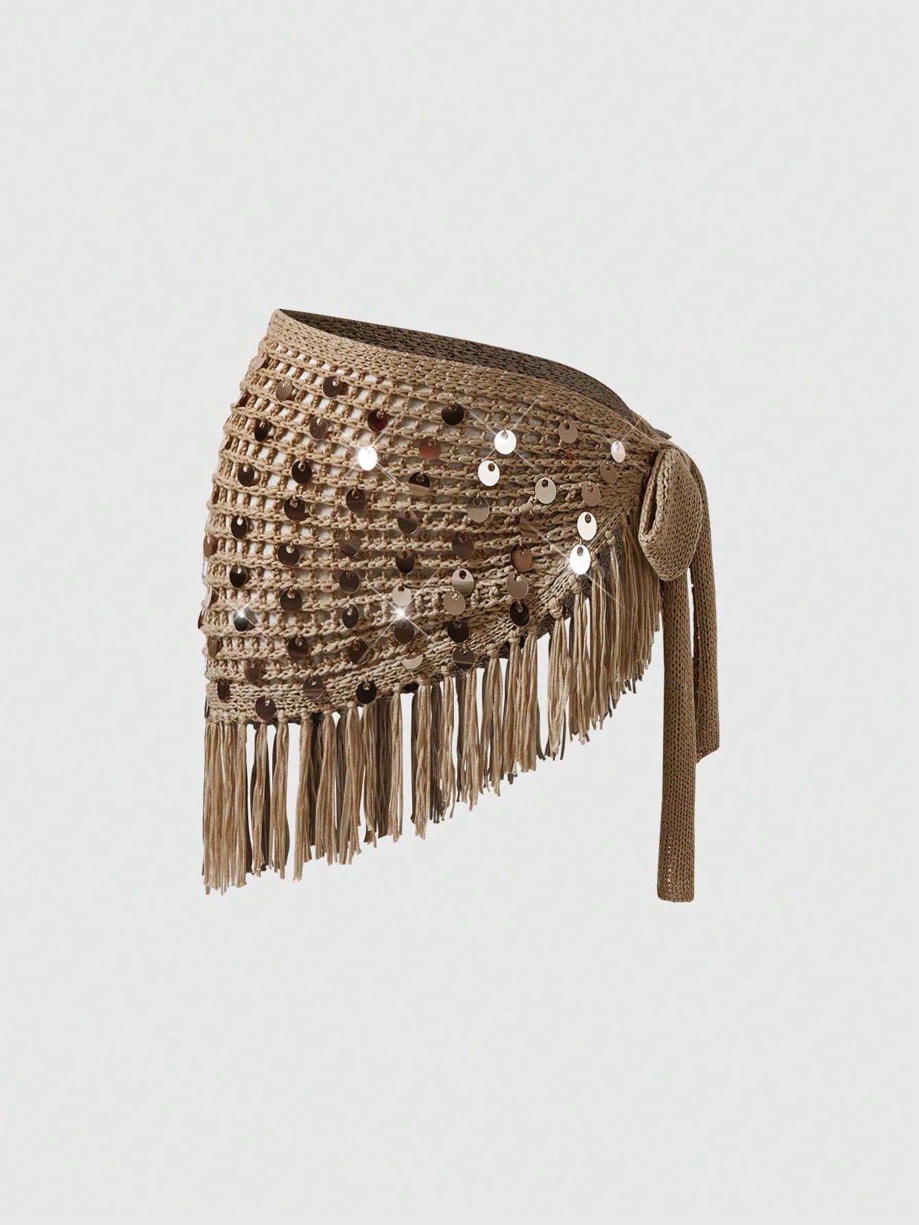 ROMWE Avant Maglione da donna con paillettes asimmetriche e frange, gonna a crochet sexy con laccio laterale, adatta per spiaggia e vacanza