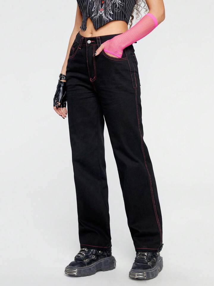 ROMWE Avant Jeans a gamba dritta con stampa teschi