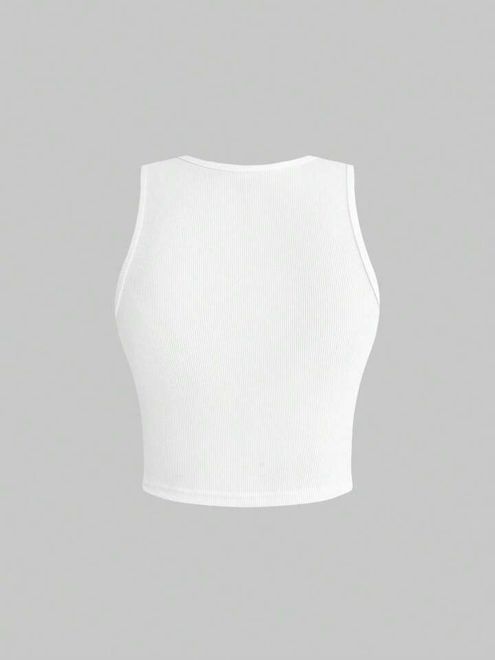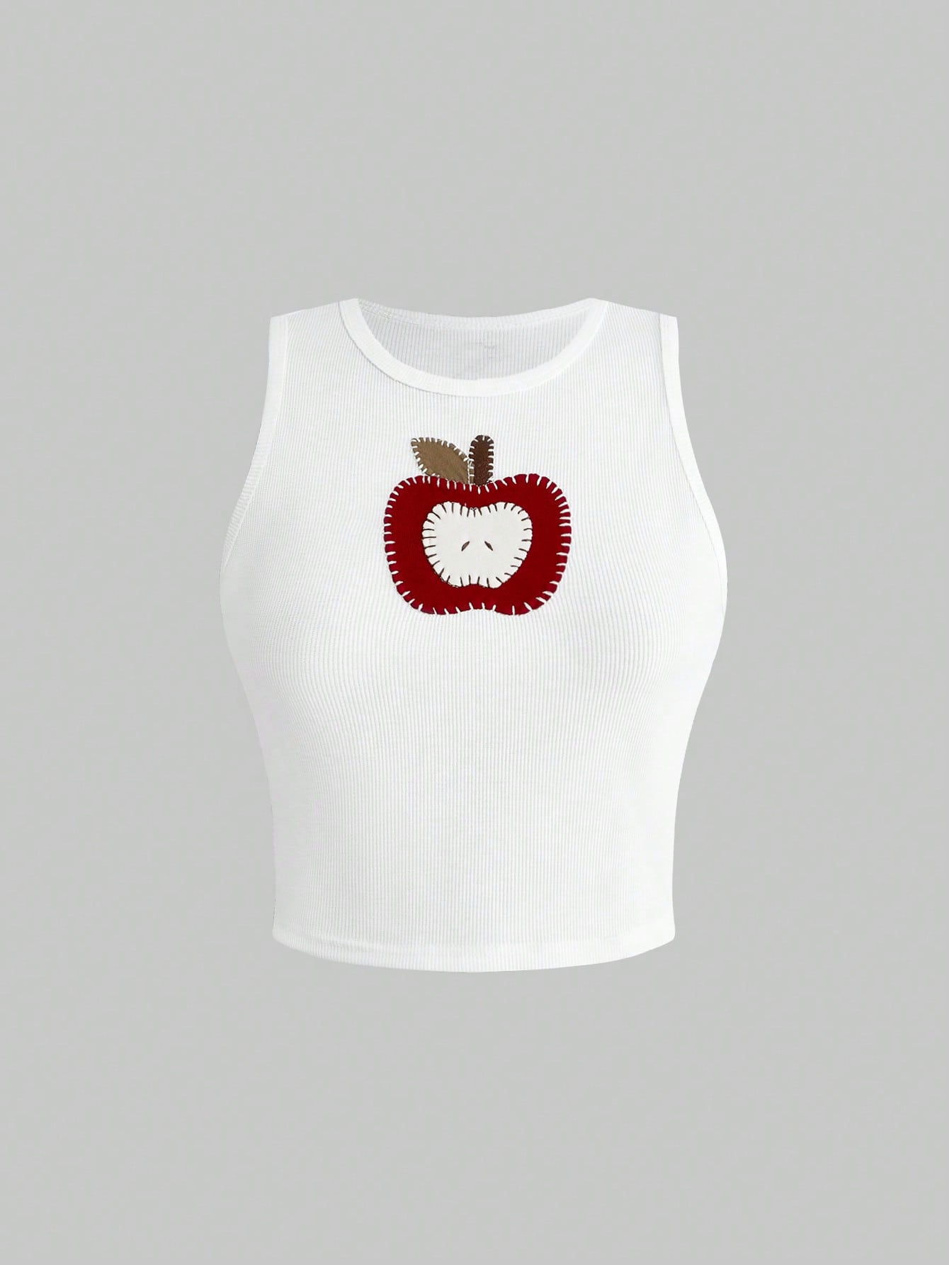 ROMWE Avant Top corto aderente senza maniche con ricamo a mela, stile casual