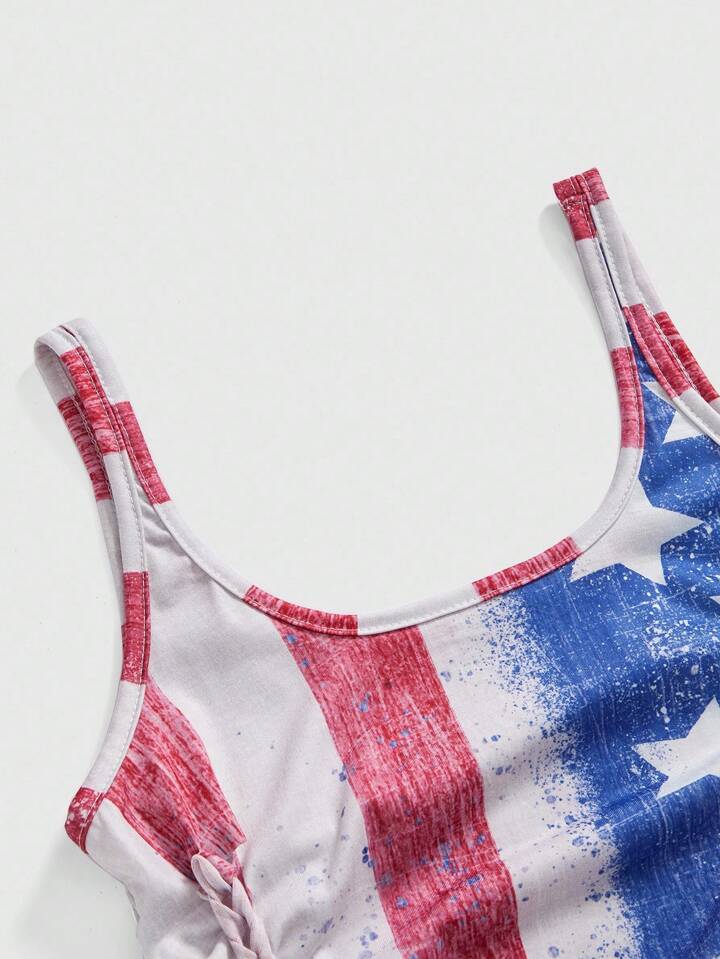 ROMWE Avant Canotta estiva alla moda con stampa bandiera americana consumata