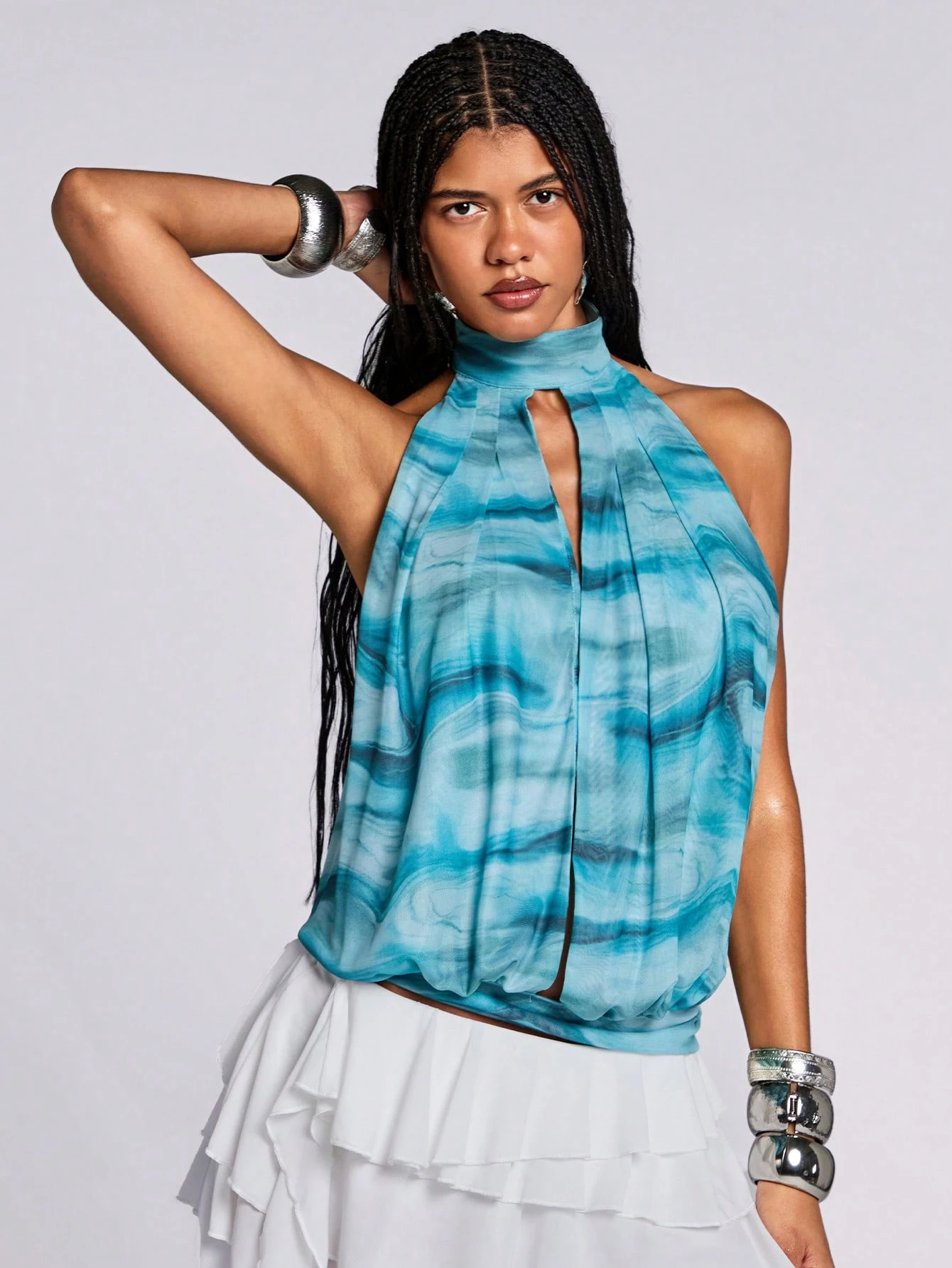 ROMWE Avant Canotta da donna con scollo a goccia e stampa a onde oceaniche, ideale per le vacanze