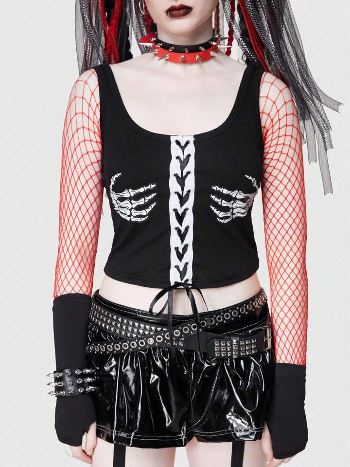 ROMWE Avant Canotta Da Donna Con Stampa Gotica Con Motivo A Mano