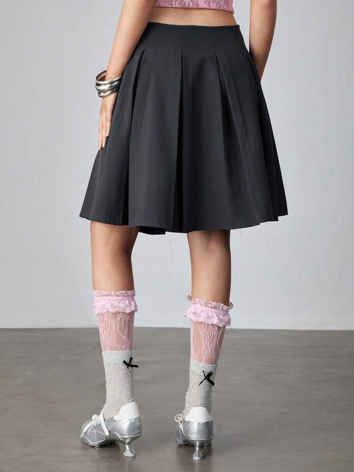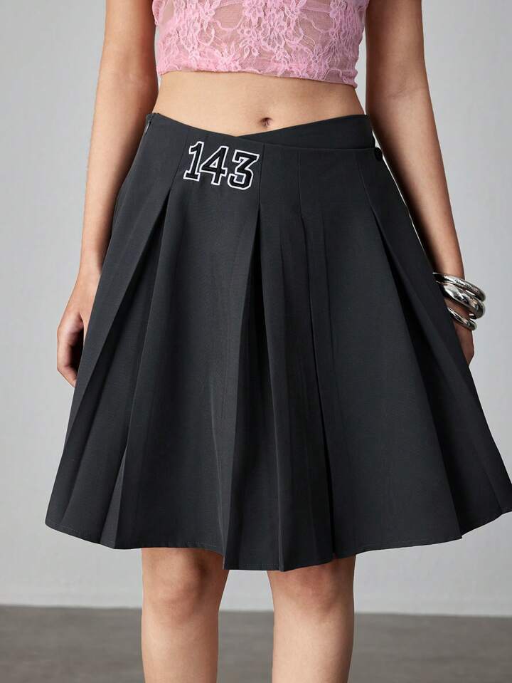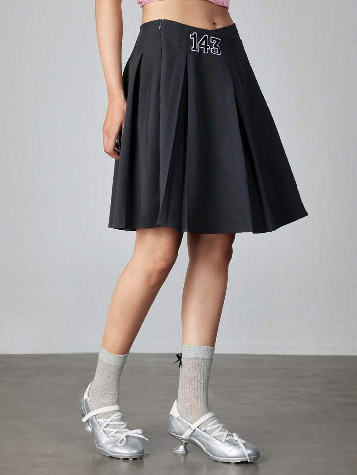 ROMWE Avant Gonna plissettata grigia da donna, gonna al ginocchio a vita bassa con grafica ricamata da ballo atletico