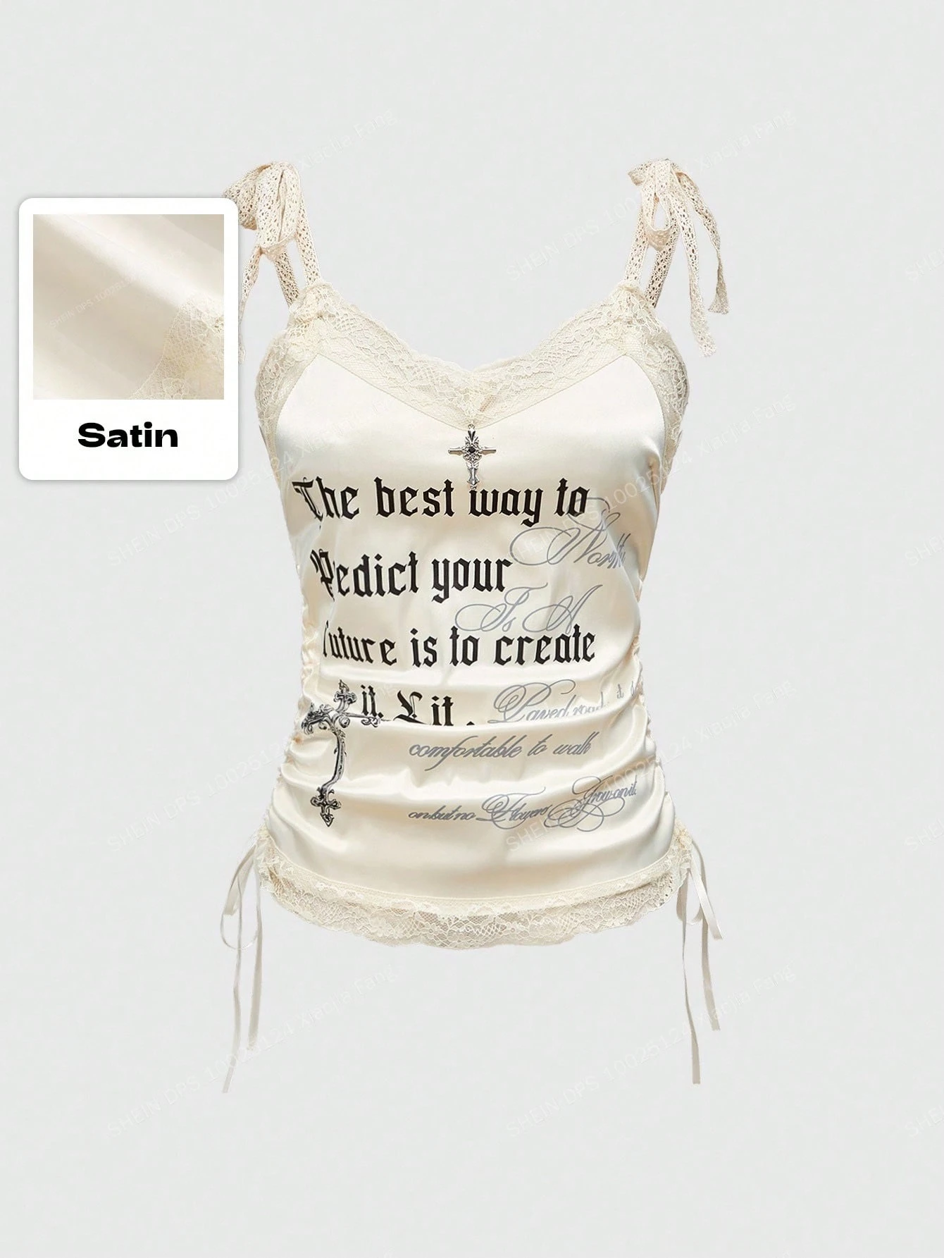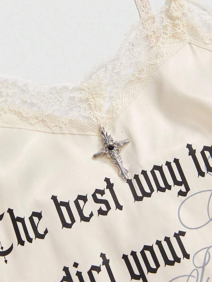 ROMWE Avant Canotta in raso con stampa di angeli e croci per Ognissanti da donna