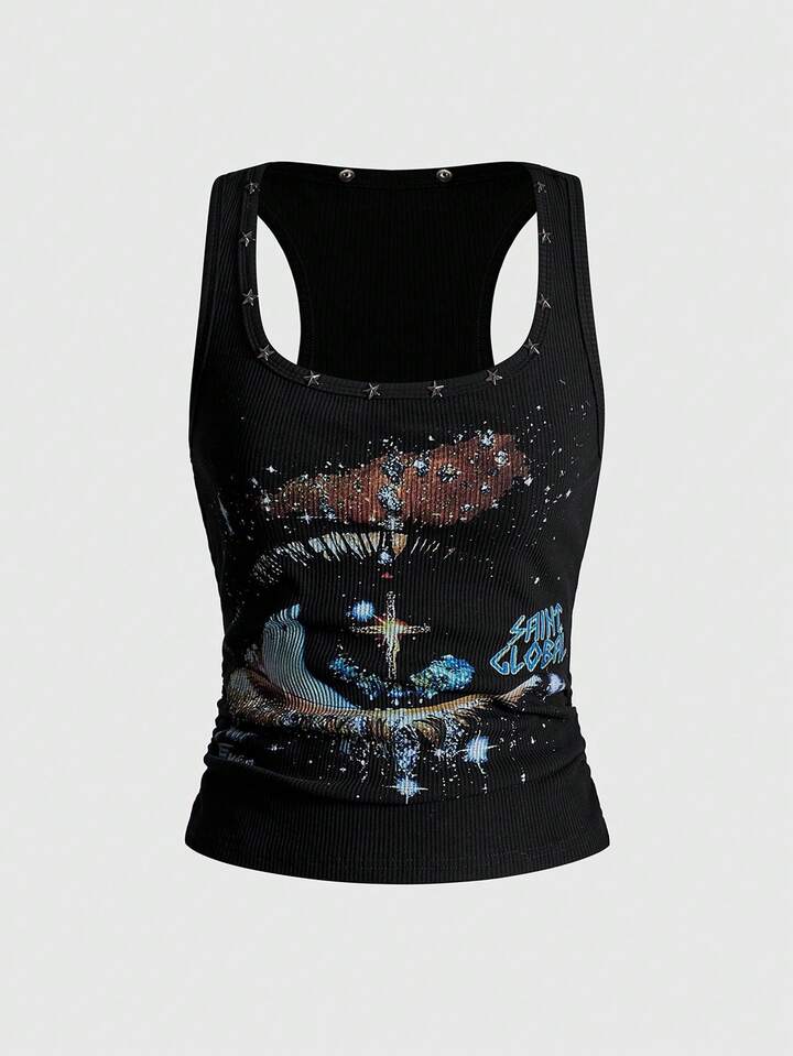 ROMWE Avant Canotta unisex da donna in stile Kpop retrò "baddie", con stampa di cielo stellato e borchie