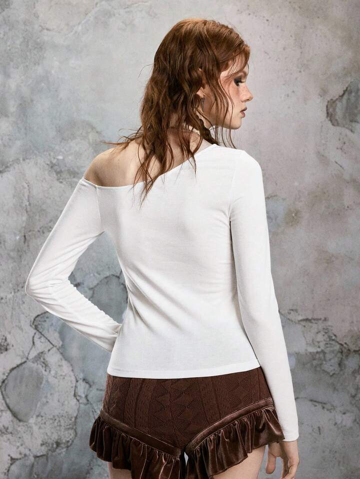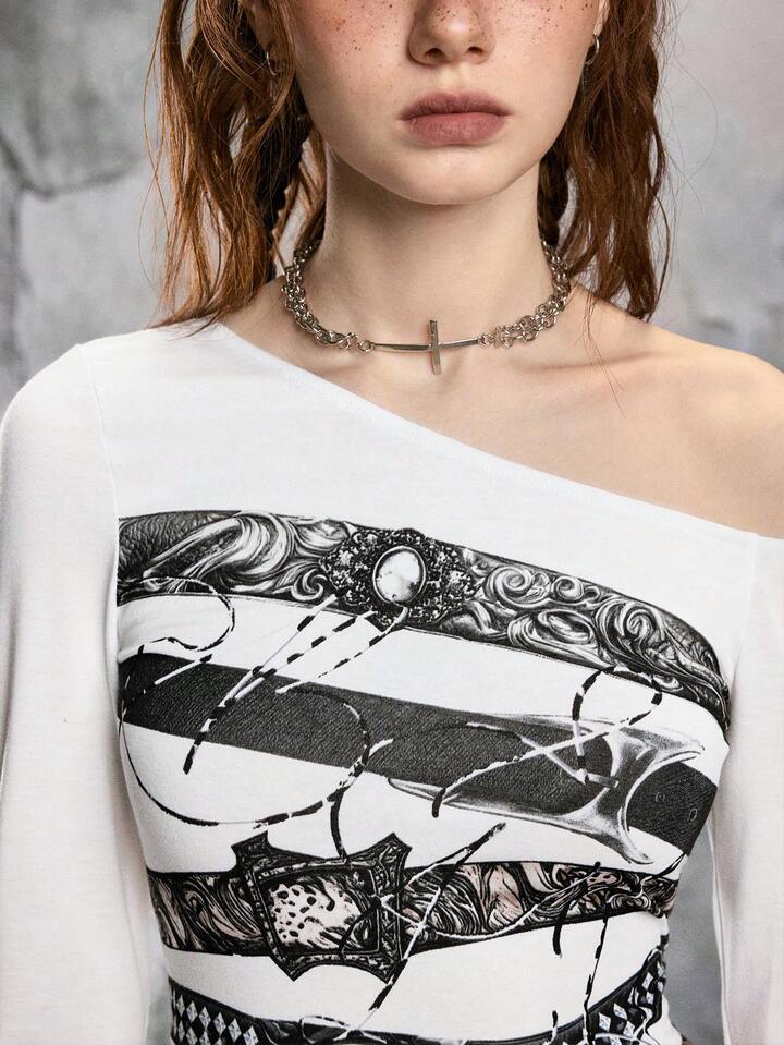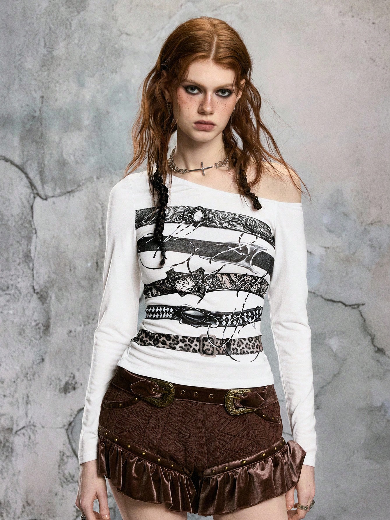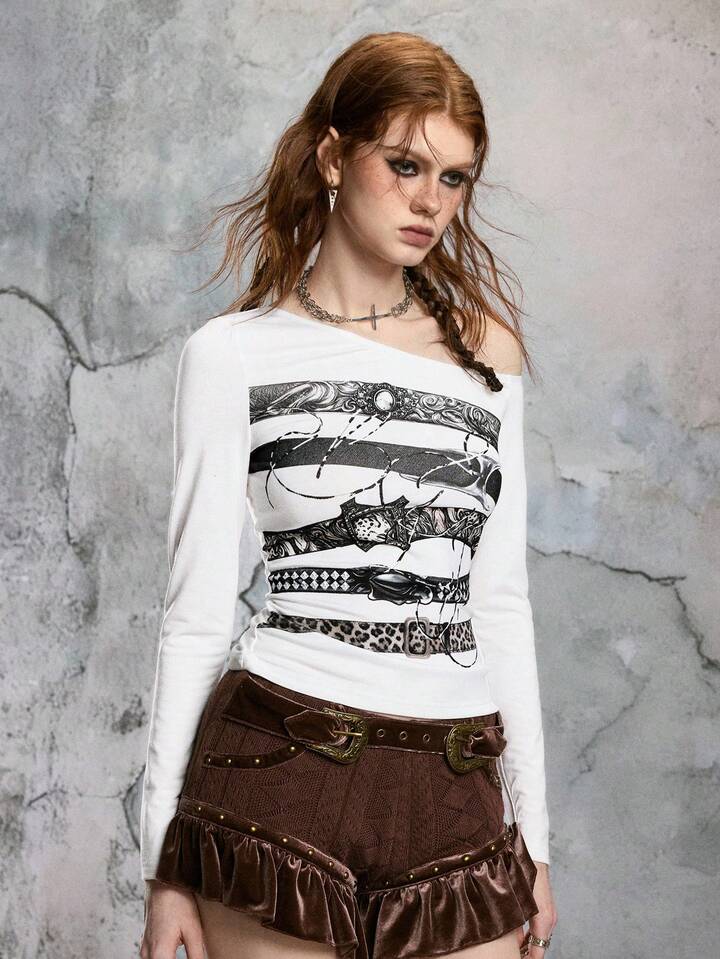 ROMWE Avant Maglietta a maniche lunghe con spalla obliqua e stampa leopardata da donna