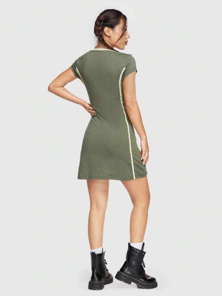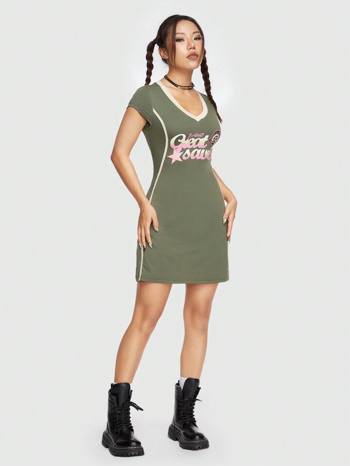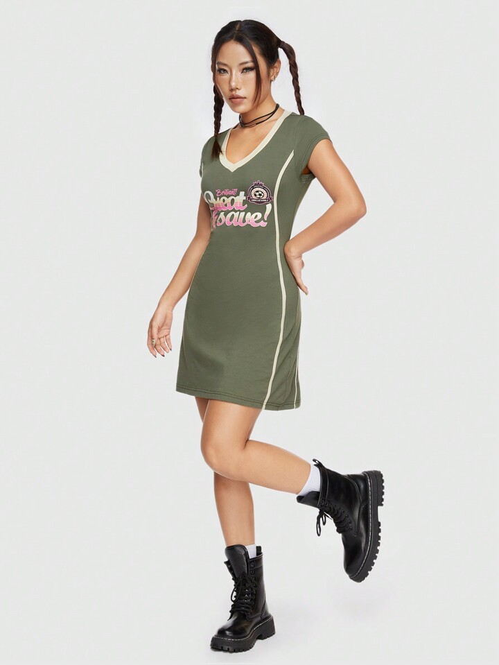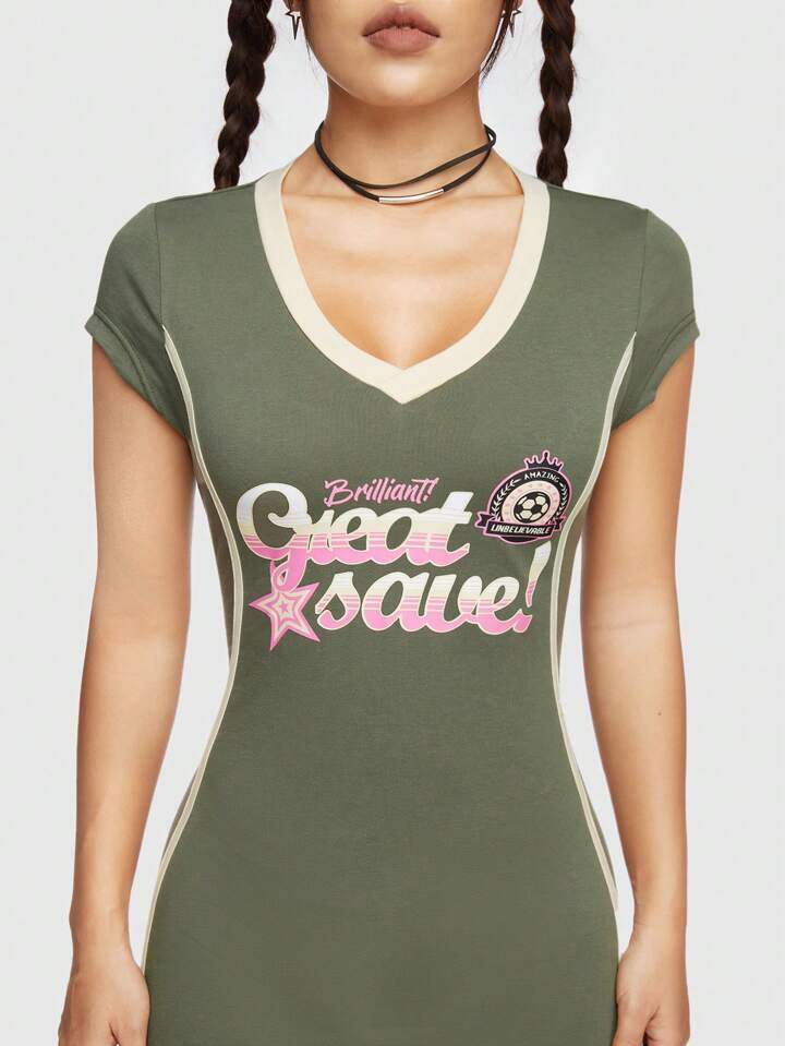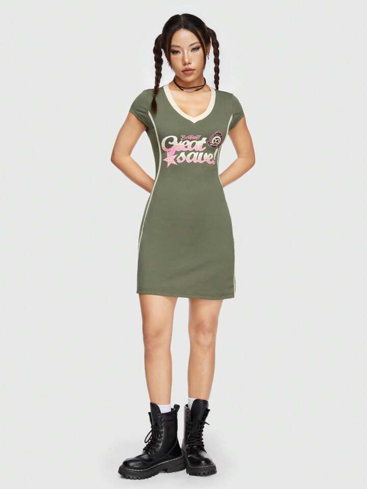 ROMWE Avant Abito Con Manica Corta Da Donna Con Stampa A Lettere
