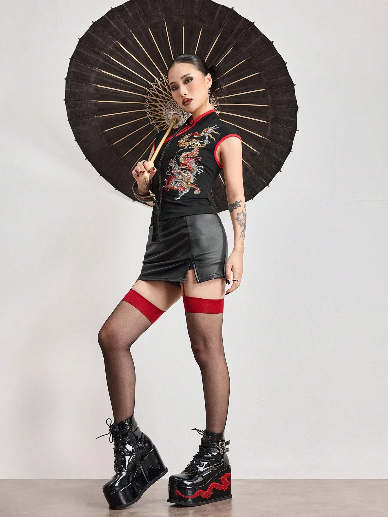 ROMWE Avant Nuova camicetta da donna in stile cinese con ricamo del drago, pittura cinese e motivo ricamato, cheongsam migliorato
