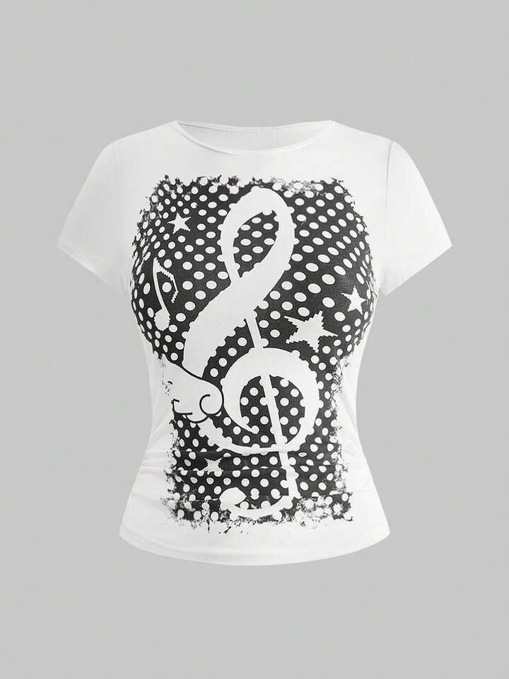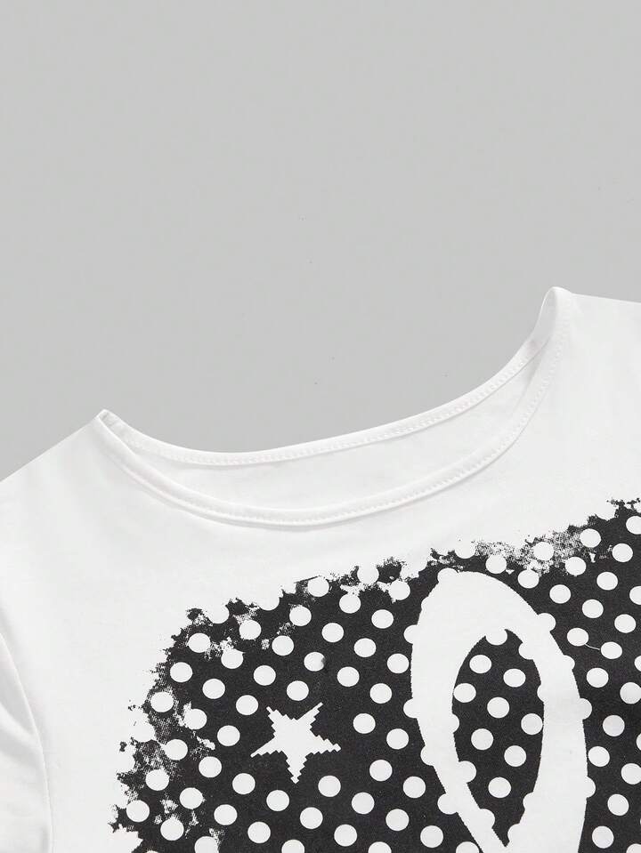 ROMWE Avant Maglietta da donna con grafica a pois e ali, stile punk rock e musica
