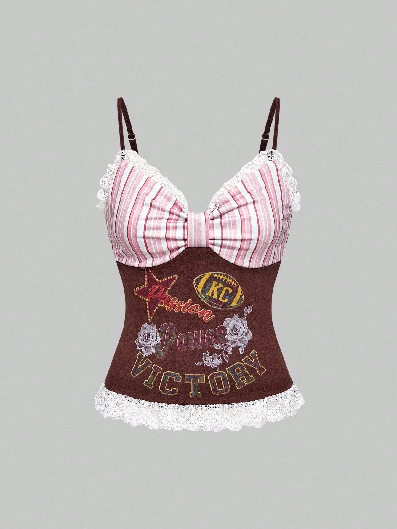 ROMWE Avant Canotta da donna in stile retrò college americano, con motivo a righe a contrasto, in stile sportivo e ballerina, adatta per il ritorno a scuola